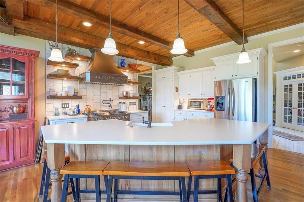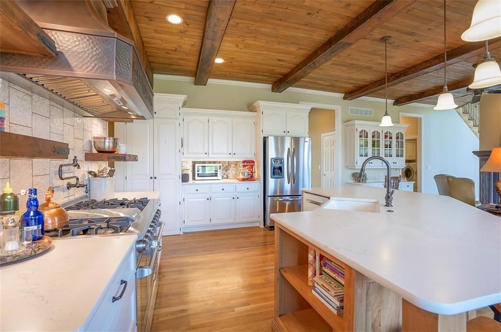 Welcome home to this unique totally updated "French Country feel" home overlooking Par 3 of Ironhorse golf course. AMAZING relaxing views out of many glorious large windows! Home boasts beautiful wood flooring, wood beams, updated kitchen with large pantry, relaxing master bath spa suite with heated floors, double staircases, large bedrooms with walk in closets, new paint, new deck and stone patio with fire pit. Enjoy the walk out basement with bedroom and full bath and storage. Spectacular home with so much pizzaz! New paint in kitchen- razzle dazzle landscaping!