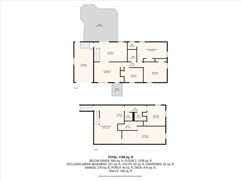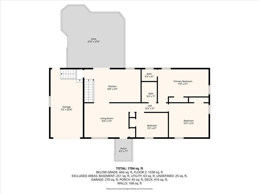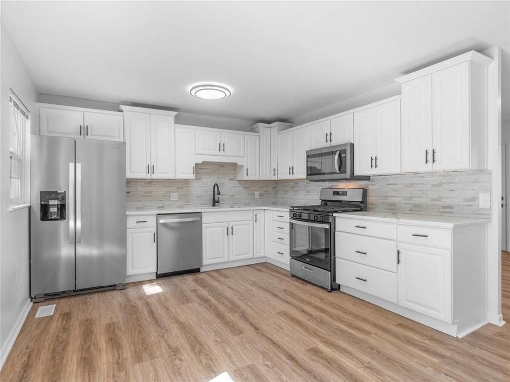 Beautifully updated and move-in ready, this spacious ranch has room for everyone. The main level features three bedrooms, two and a half baths, a bright living room, and an eat-in kitchen with stainless steel appliances and access to a brand-new back deck. Downstairs, the finished basement includes a fourth non-conforming bedroom, a rec room with a wet bar, and large storage space. The fenced backyard, new roof, and one-car attached garage with both main-floor and basement entry add practicality to this stylish home.