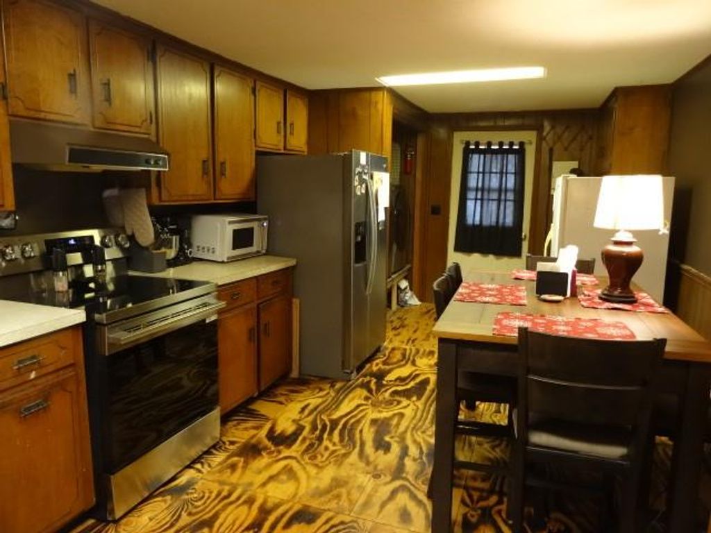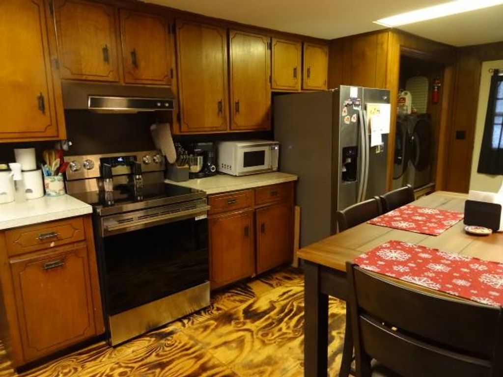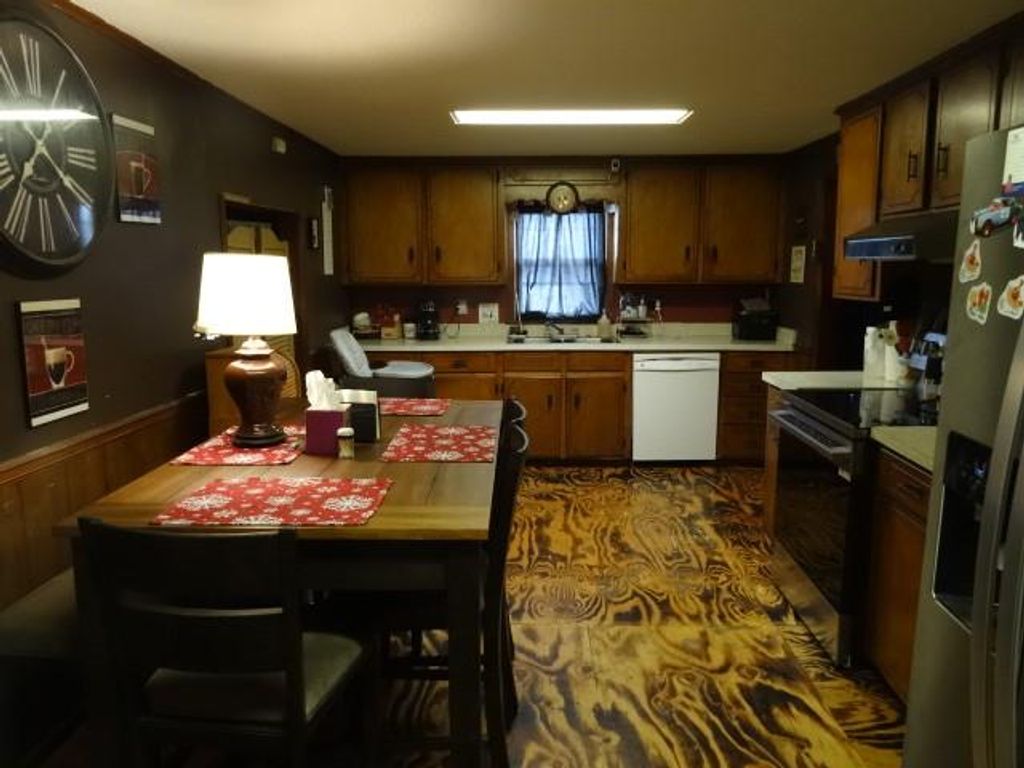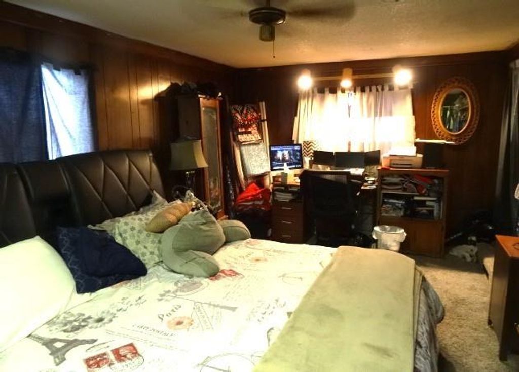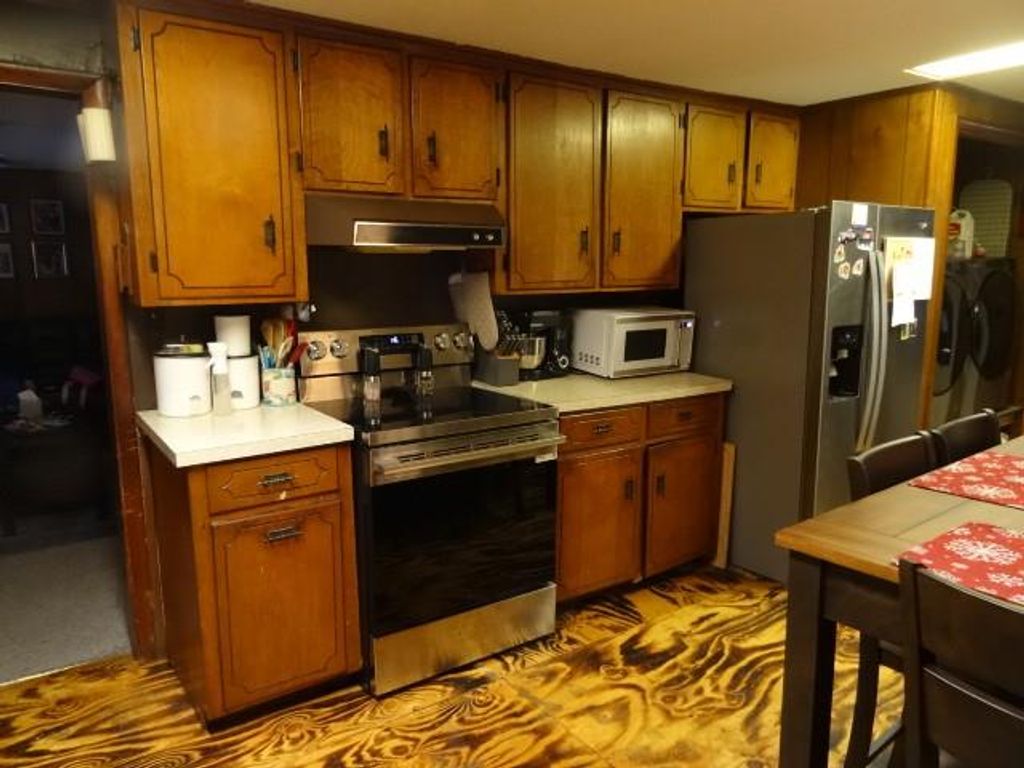 200 x 90 Lot with multiple entrances to this corner lot. Park in front or go to the side to enter the 2 car garage or enter from another street. If your interest is working in your garage then this is perfect for you as it has a gas furnace, concrete floor, overhead and walk-through door. 4 BR, 1 BA house. (Base)wood flooring has been replaced, several rooms sheet rock has been replaced, load bearing beam the length of the house and floor joists also replaced where needed. New carpet. Metal roof in 2022, also water heater. Attached house garage was converted into Primary BR/Office. Fireplace in LR is electric. Large yard is perfect for kids dirt bike track, places to park the fishing boat, trailer or RV. Spacious heated garage is a dream place to work. Covered wood deck off the kitchen is large enough to have a table and a grill. Property comes with a dog pen. Owner got creative with plywood and torch for the kitchen floor.