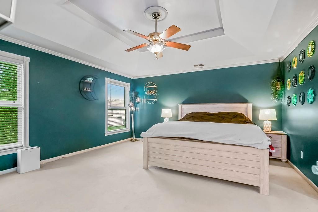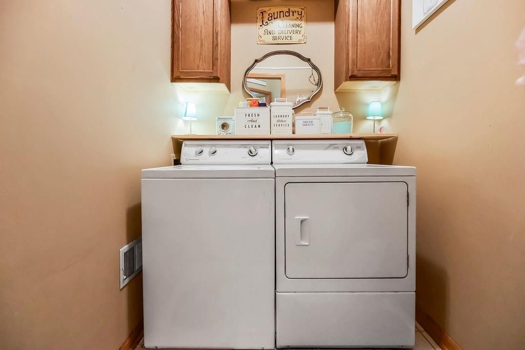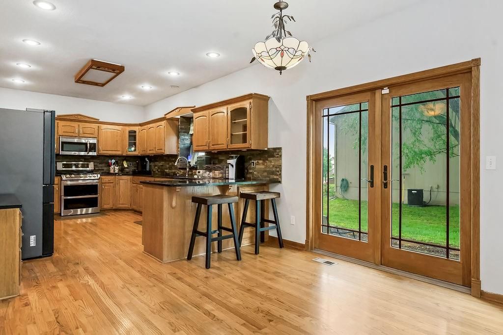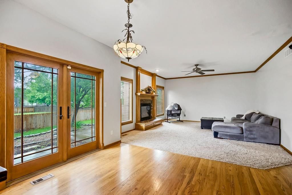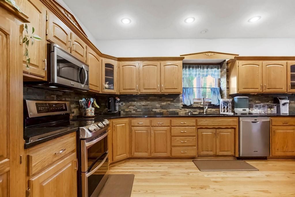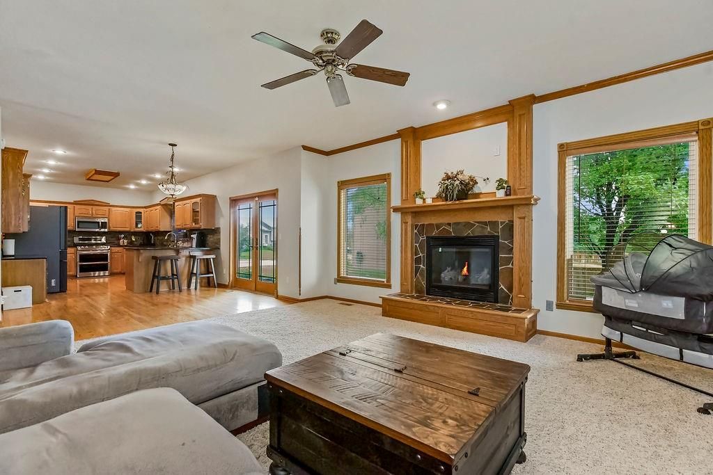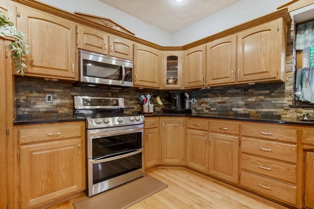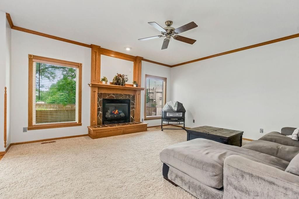 Wow! Wonderful spacious home with family-style living and dining rooms! Super-sized kitchen with granite countertops, stone backsplash, large pantry with rollout drawers, convection double oven stove; beautiful fireplace with gas logs. Main floor laundry room and 1/2 bath. Magnificent front window. Sitting room can be office/dining. Large master suite with a bathroom heated tile floor, soak/jet tub and HUGE 20' walk-in closet. Basement 5th bedroom, full bath, recreation room/wet bar and plenty of storage! 2 attached sheds.