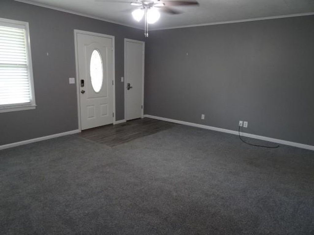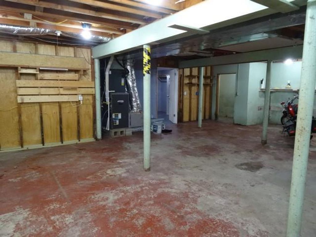 Back on market with no fault of the property. Lg. Treed Lot with spacious 3 BR, 1.5 Baths. Remodeled in 2023. LVP Flooring, carpet, vinyl in bath, Original wood floors in 2 bedrooms, Faux wood blinds in white match the painted white woodwork. Lg. living room with built-ins. Coat closet has a keyed lock on it as previous had there gun safe in closet. Kitchen has lots of counter space and cabinets. Breakfast bar or mixing area/above and below cabinets. By the back door is spot to sit and remove your shoes and room to store them also a place to hang your coats. Kitchen also has a walk-in pantry and laundry area. Garage had been enclosed making the 3rd bedroom or a second living space. Windows and closets. Downstairs is a room with a 2nd stool, sink in a vanity close to the water heater. Also a safe room under the concrete front porch. An additional room could be hobby, work out space, sewing, exercise--It has a concrete floor, painted walls, shelving. On into the large unfinished basement garage. Concrete flooring is in excellent condition. Walls do not leak, access with vehicle through double wood doors. This is a large space to work on your projects. There is also inside water available for garden hose. House is very roomy and yard is very shaded. One side of the yard is fenced (belongs to the neighbor) New Breaker box 2018. 200 amp. Drain in floor of basement garage has a new back flow device added to sewer line.