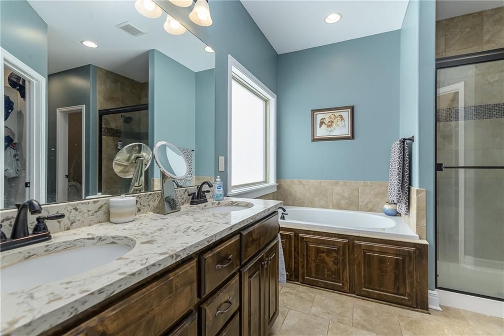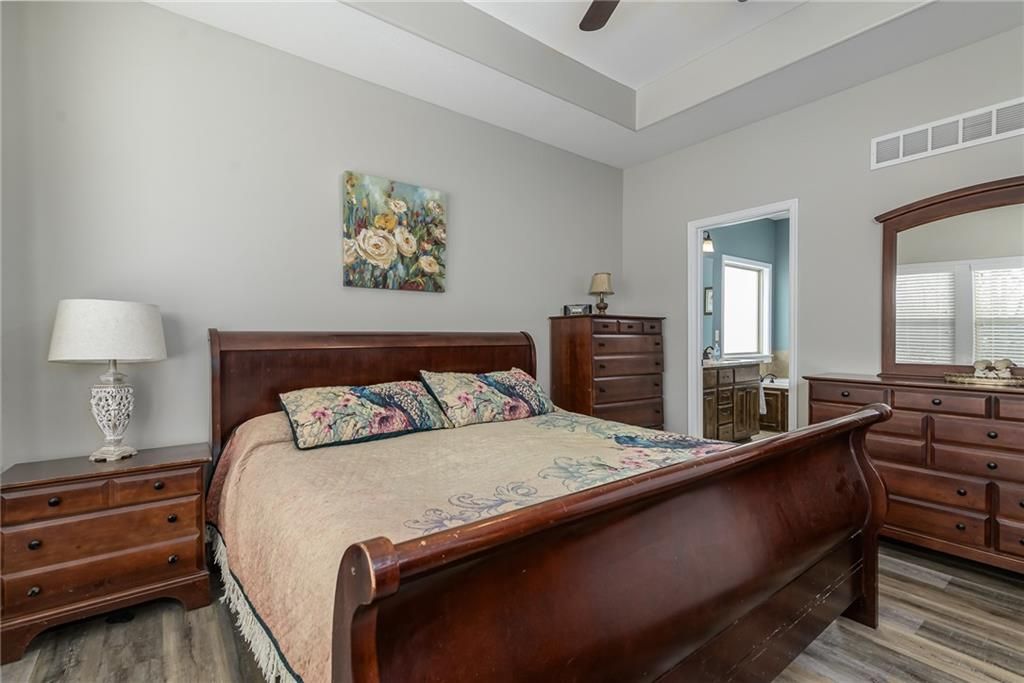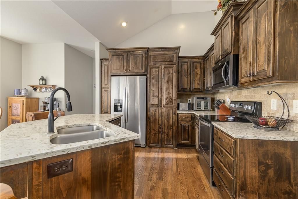 5000 Flooring Allowance, Plus Home Warranty<<<<<<<<<<<<<<<<<<<<<< Welcome home to this stunning 5-bedroom, 3-bath reverse ranch nestled in the quiet Stone Creek cul-de-sac. From the moment you walk in, the open floor plan invites you to relax and feel at home, featuring a cozy fireplace, spacious eat-in kitchen/dining area with granite counters, large island, and a walk-in pantry built for convenience. This practical layout continues with a primary suite that is your private retreat with walk-in closets, double vanities, a jetted tub, and a separate shower. Enjoy the convenience of the laundry room on the main floor with a mud room just as you walk in from the garage. Downstairs, the finished lower level provides endless possibilities with a family room, recreation room, tons of storage, and 2 additional bedrooms for guests and bathroom. This home has a water softener system as well as lots cabinets, closets and plenty of additional storage to support your organized lifestyle. As you walk outside of this home, you will enjoy a peaceful backyard oasis with a beautiful tree line and the sound of the creek which flows along the back of the property; the covered deck and patio are perfectly designed for entertaining with a wrought iron fence that borders the back of the home. The oversized three car garage has additional attic storage as well as a mount for your TV. This is home - it's a place to live, enjoy and create memories.