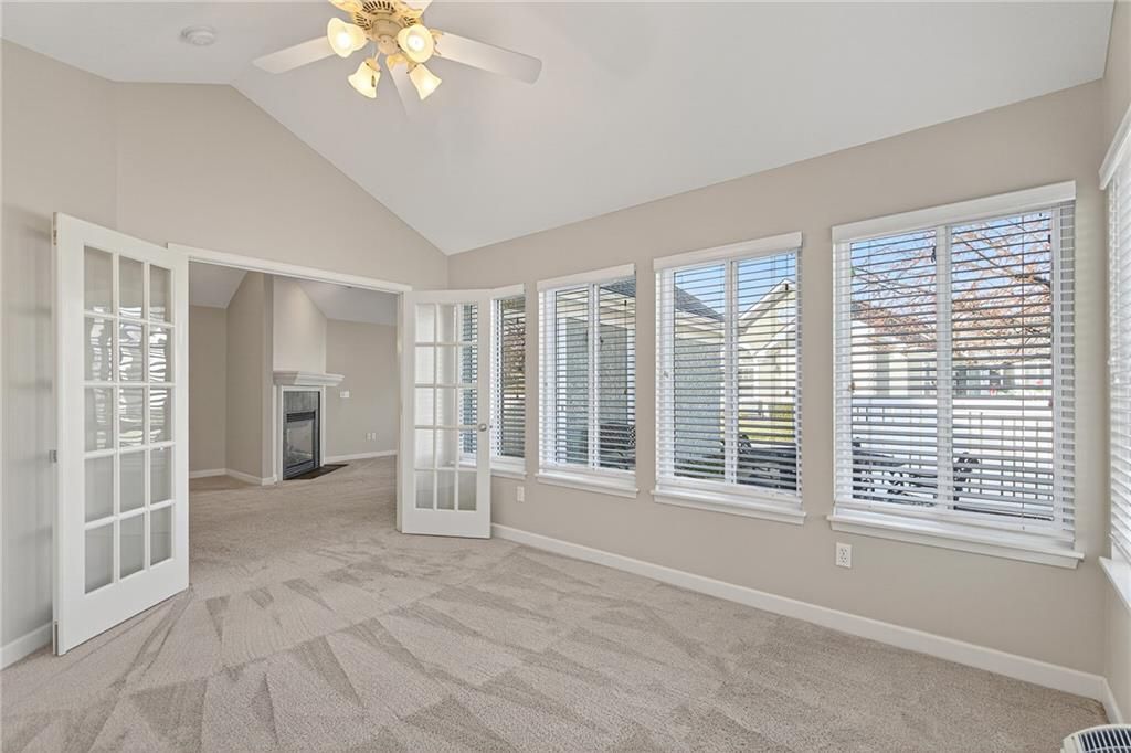 Welcome to this beautifully maintained home with a spacious, open feel awash in natural light. The main living area greets you with its vaulted ceilings, cozy fireplace, and custom bookshelves Enjoy true one-level living in this vibrant, maintenance-provided community. Soaring ceilings and abundant natural light create an inviting, airy atmosphere, while care-free living means more time to enjoy life without the burden of outdoor chores or repairs. A charming sunroom offers the perfect spot for relaxing or visiting with friends! The kitchen features granite countertops, and the generously sized primary suite includes a large walk-in closet. An oversized garage with a concrete storm room adds extra peace of mind as well as bonus storage. This wonderful neighborhood offers a lively social scene with weekly activity groups, book clubs, potluck dinners, and more - plus a community clubhouse with a pool and fitness room. New roof being installed.