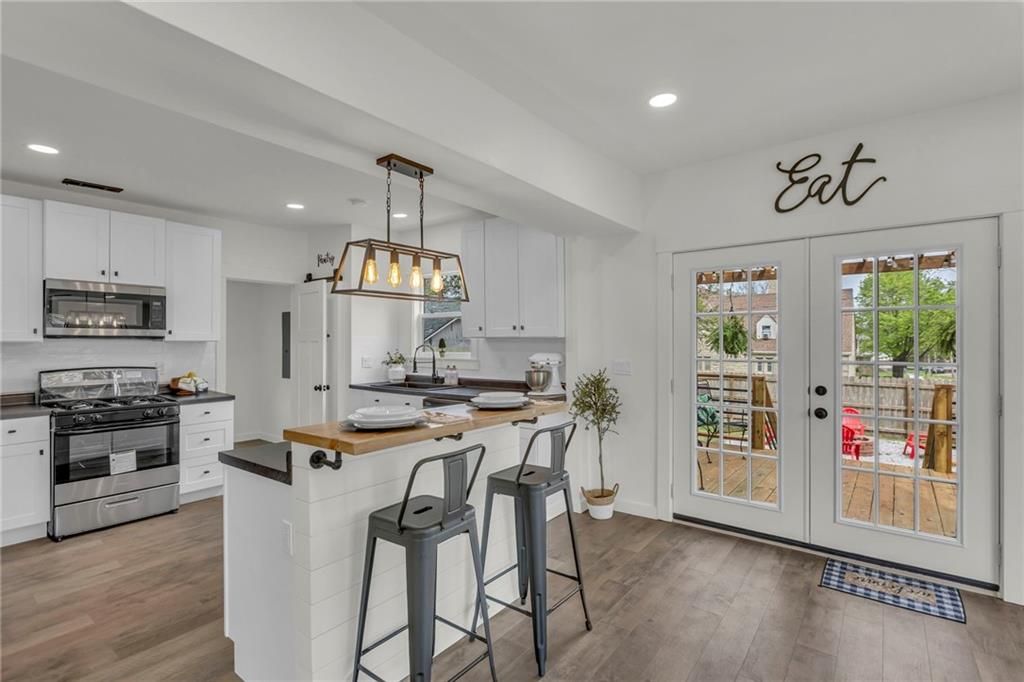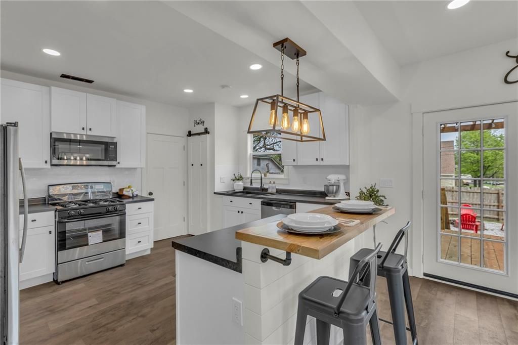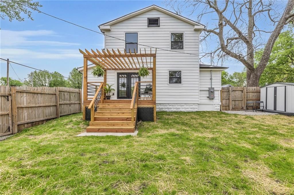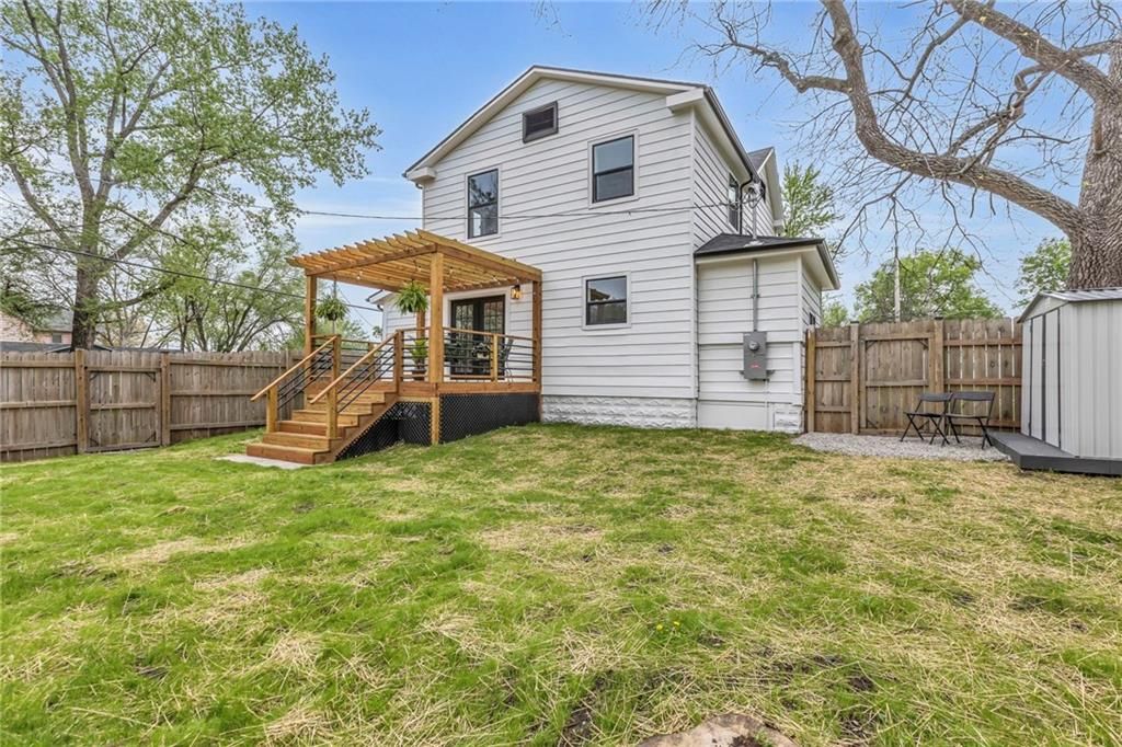 Check out this 3 bed, 1 bath industrial farmhouse, where turn of the century style meets modern day improvements. This charming home located on a corner lot has been completely remodeled. New interior & exterior paint. All new flooring throughout. New windows and HVAC. Kitchen boasts numerous cabinets for your storage needs, island and all new appliances. Master bedroom with walk-in closet. Upstairs bathroom with double vanity. New gutters. Roof is 1 1/2 years old. Open the double french doors to extend your living space to the outdoors. Backyard is complete with deck, pergola, firepit, shed and privacy fence. Call today to make this beautifully remodeled home yours!