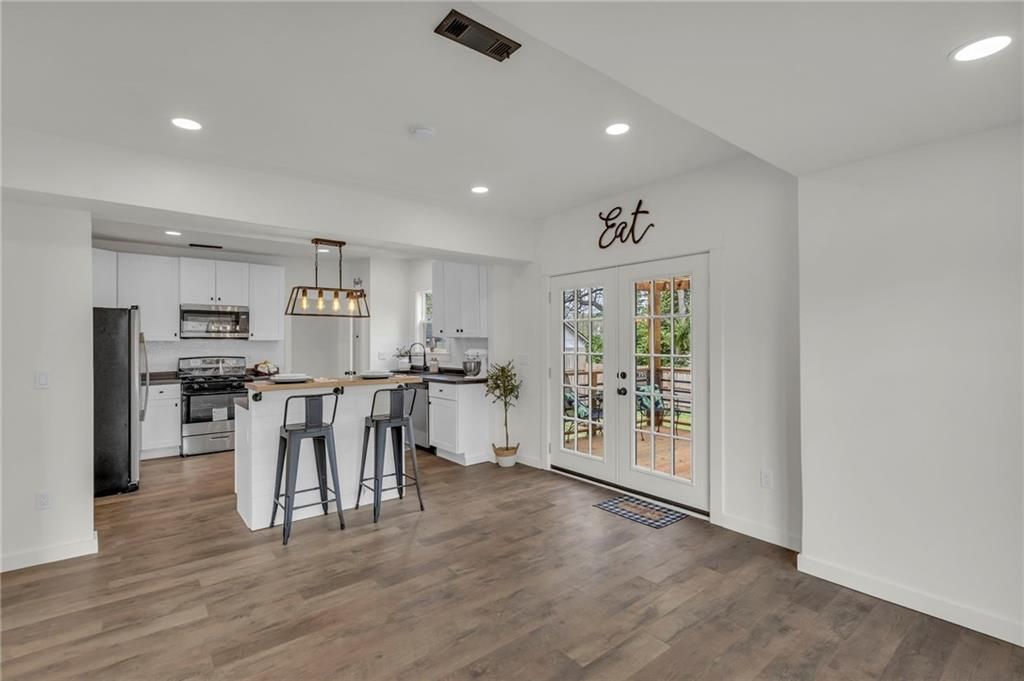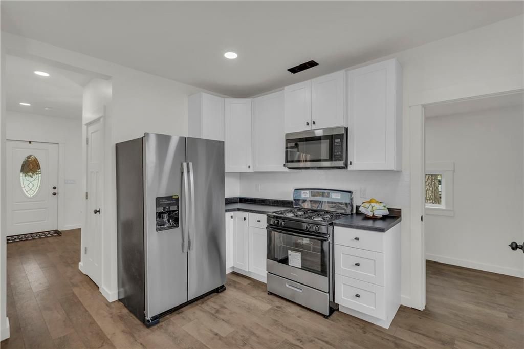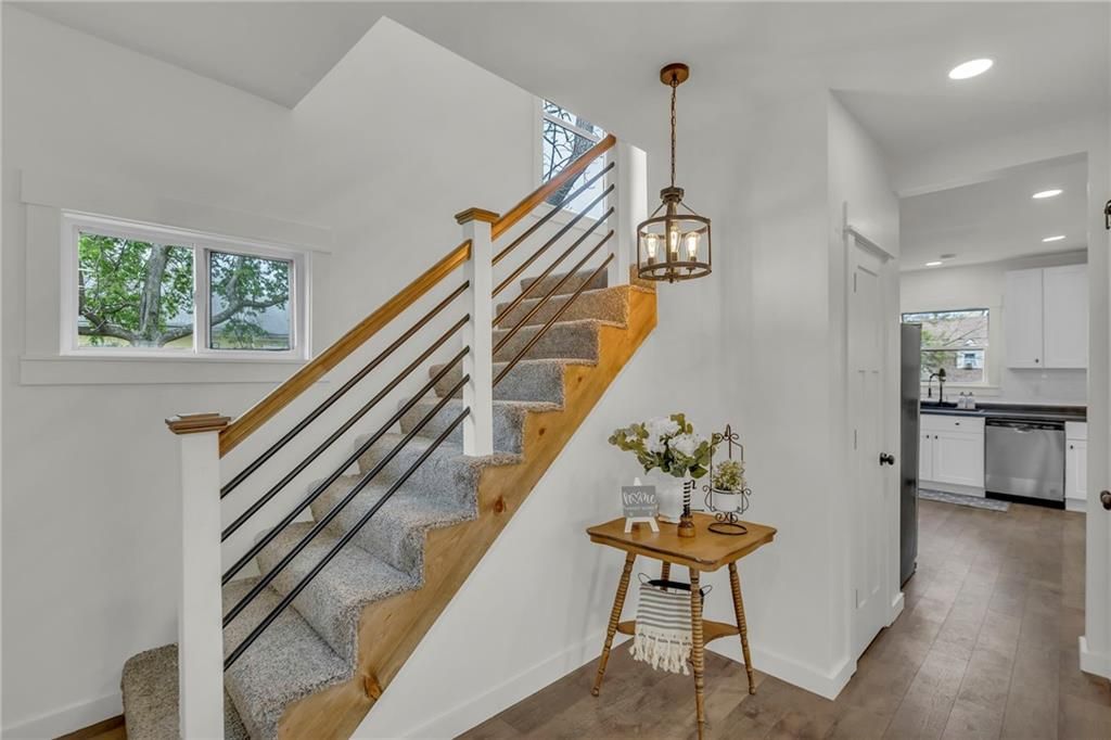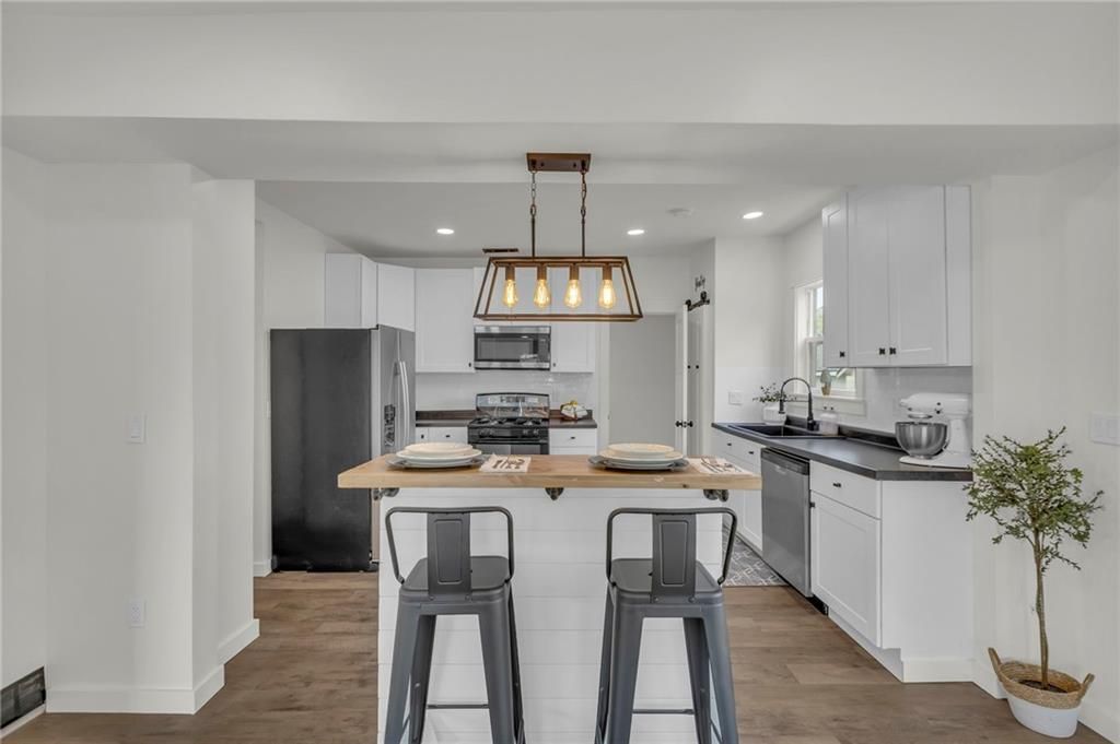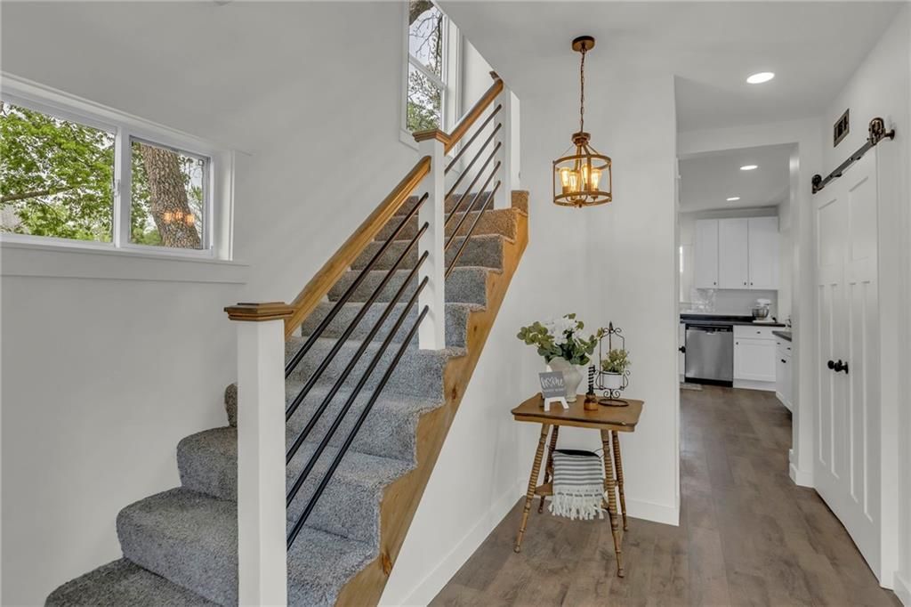 Check out this 3 bed, 1 bath industrial farmhouse, where turn of the century style meets modern day improvements. This charming home located on a corner lot has been completely remodeled. New interior & exterior paint. All new flooring throughout. New windows and HVAC. Kitchen boasts numerous cabinets for your storage needs, island and all new appliances. Master bedroom with walk-in closet. Upstairs bathroom with double vanity. New gutters. Roof is 1 1/2 years old. Open the double french doors to extend your living space to the outdoors. Backyard is complete with deck, pergola, firepit, shed and privacy fence. Call today to make this beautifully remodeled home yours!