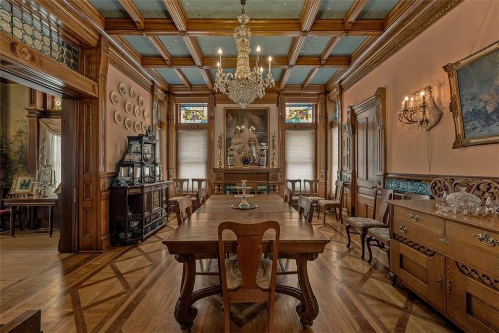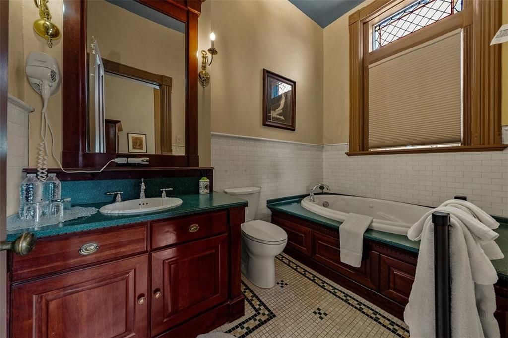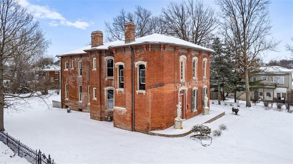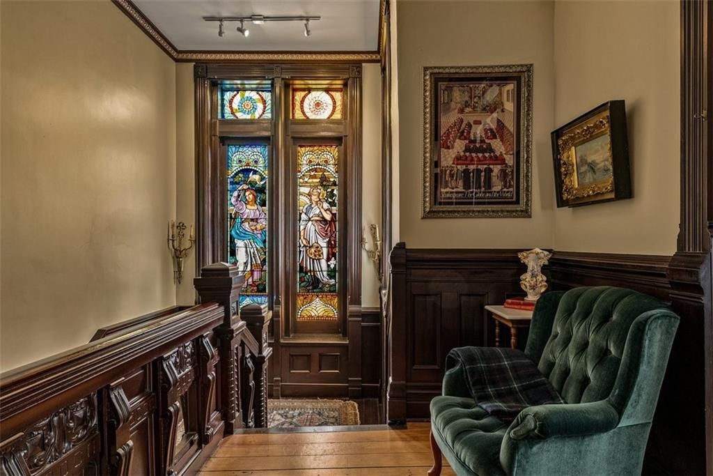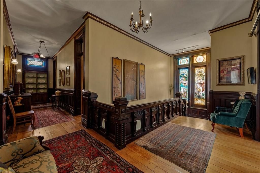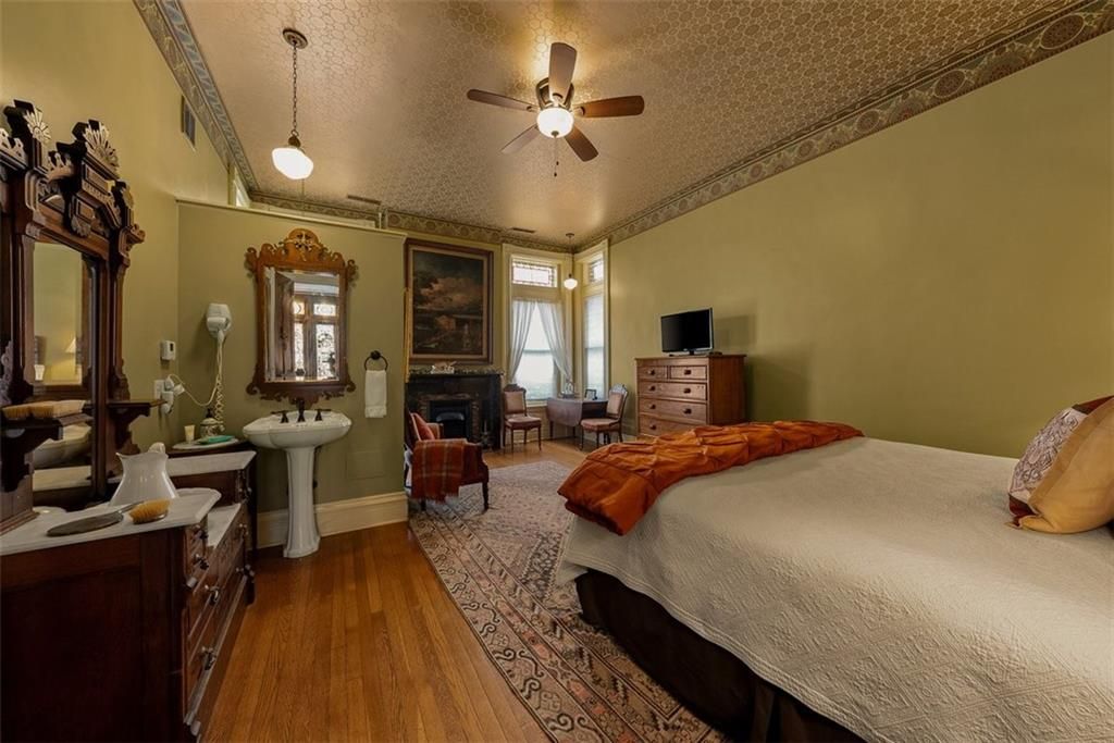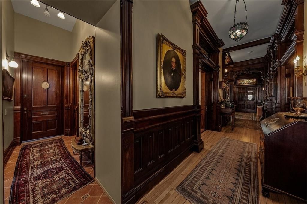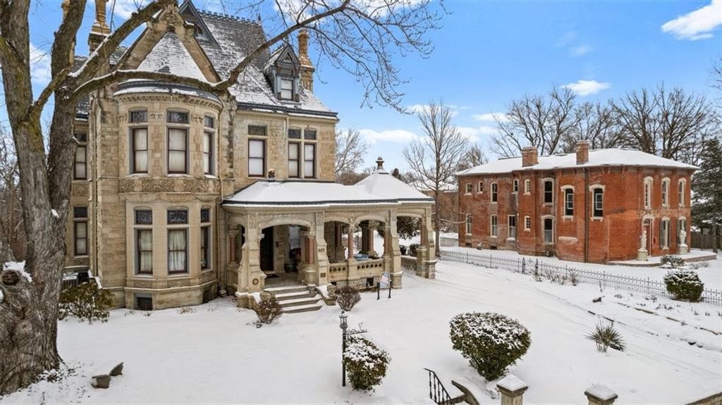 Shakespeare Chateau Inn and Gardens, located in the historic Hall Street District, is one of St. Joseph's premier homes. A SHORT DRIVE TO KANSAS CITY INTERNATIONAL AIRPORT! Built in 1885, this Chateauesque style home was built by Nathan P. Ogden. This high-Victorian mansion is an architectural gem, showcasing 47 original stained glass windows, exquisite hand-crafted woodwork, an expansive encaustic tile foyer, ornate plaster ceilings, and many original chandeliers - just to name a few. The main house is a fully furnished turn-key bed and breakfast with six elegant suites, a spacious commercial kitchen and wine cellar perfect for small gatherings. Four guest rooms on the second level are furnished with period art and antiques each named after works of Shakespeare. Two additional suites on the third level are ideal for long term guests. The carriage house provides three apartments, perfect for longer-term rentals, adding versatility to the property. 819 Hall Street is also included. This all brick house has been refurbished on the exterior and inside is a blank canvas, stripped to the studs and ready for a transformative rehab. Whether you envision a personal residence, a thriving B&B, or an event space, the possibilities here are endless. Live your dream and make Shakespeare Chateau your next great chapter. This is a RARE OPPORTUNITY to own a piece of history. This house has changed hands only five times in 140 years and remains as magnificent as the day it was built.