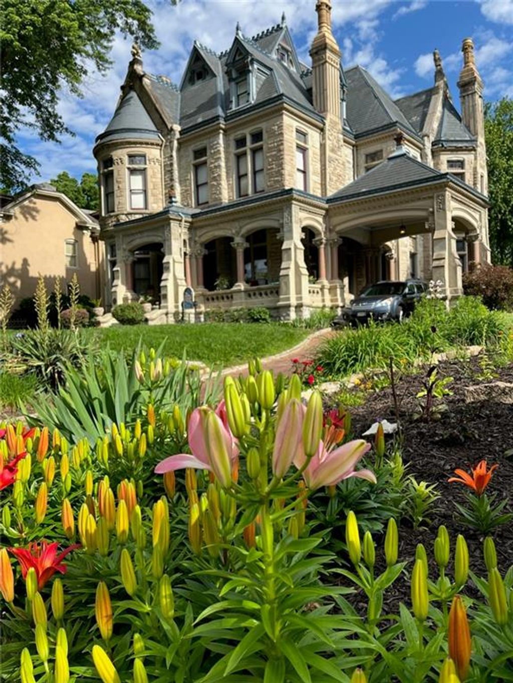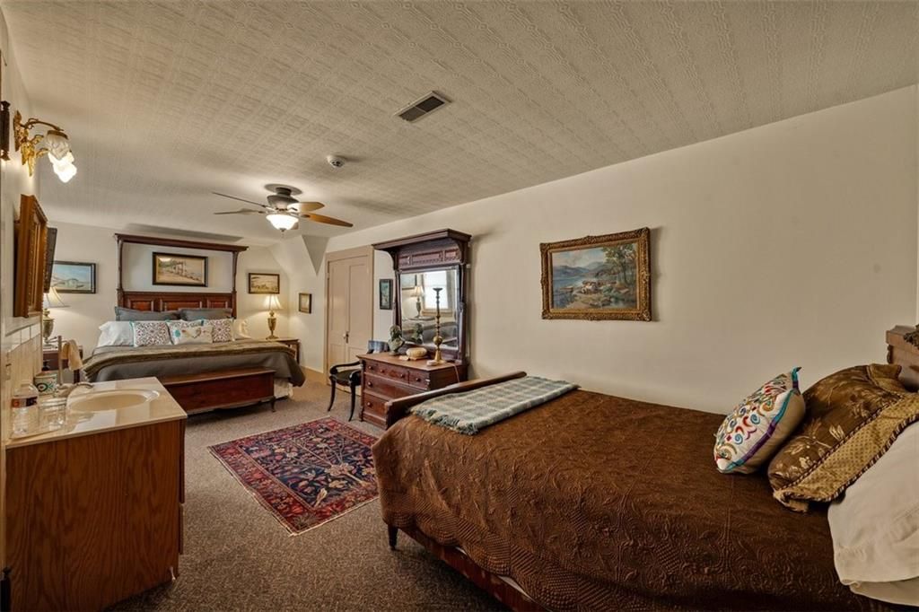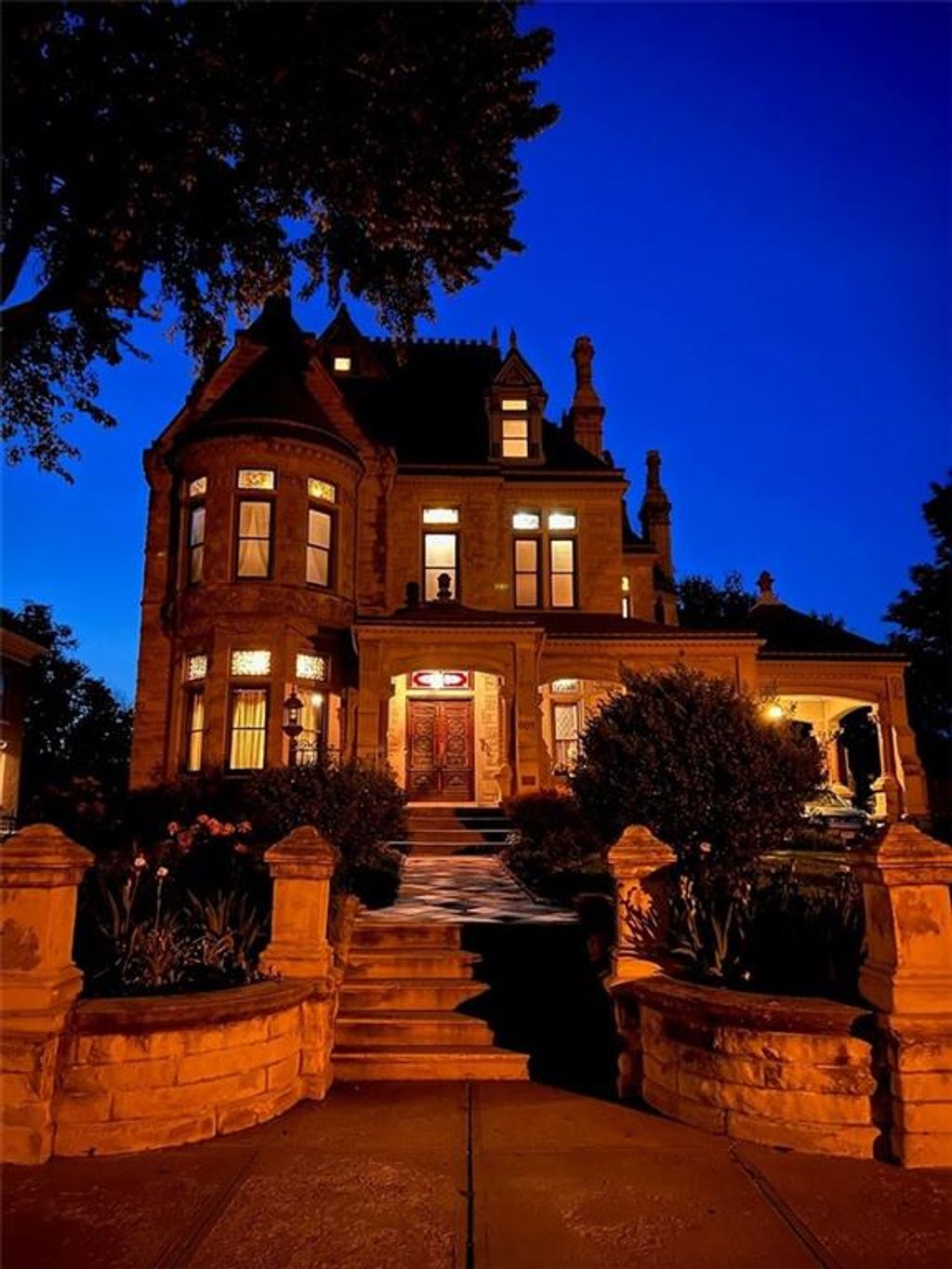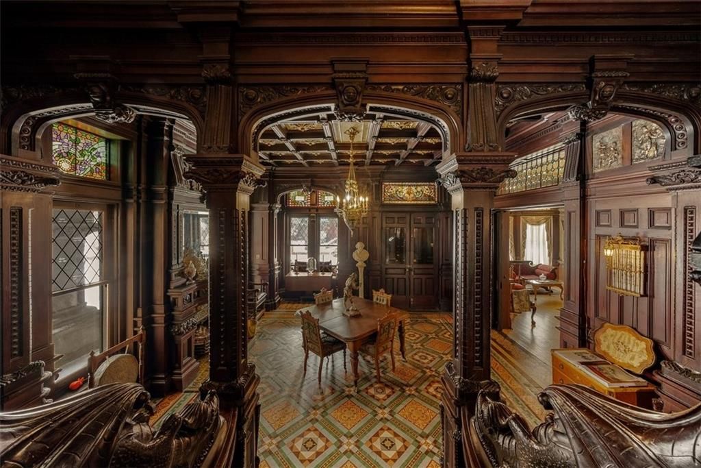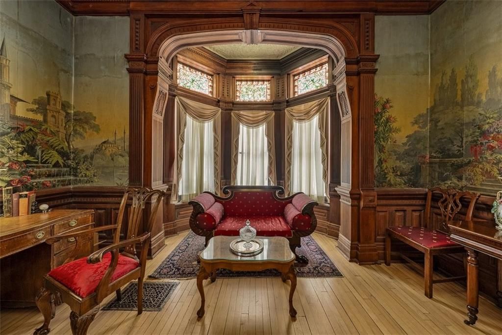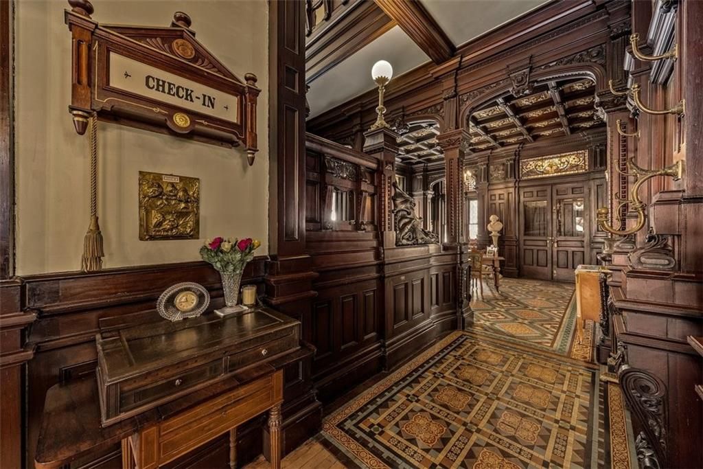 Shakespeare Chateau Inn and Gardens, located in the historic Hall Street District, is one of St. Joseph's premier homes. A SHORT DRIVE TO KANSAS CITY INTERNATIONAL AIRPORT! Built in 1885, this Chateauesque style home was built by Nathan P. Ogden. This high-Victorian mansion is an architectural gem, showcasing 47 original stained glass windows, exquisite hand-crafted woodwork, an expansive encaustic tile foyer, ornate plaster ceilings, and many original chandeliers - just to name a few. The main house is a fully furnished turn-key bed and breakfast with six elegant suites, a spacious commercial kitchen and wine cellar perfect for small gatherings. Four guest rooms on the second level are furnished with period art and antiques each named after works of Shakespeare. Two additional suites on the third level are ideal for long term guests. The carriage house provides three apartments, perfect for longer-term rentals, adding versatility to the property. 819 Hall Street is also included. This all brick house has been refurbished on the exterior and inside is a blank canvas, stripped to the studs and ready for a transformative rehab. Whether you envision a personal residence, a thriving B&B, or an event space, the possibilities here are endless. Live your dream and make Shakespeare Chateau your next great chapter. This is a RARE OPPORTUNITY to own a piece of history. This house has changed hands only five times in 140 years and remains as magnificent as the day it was built.