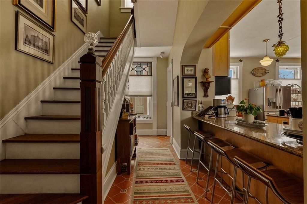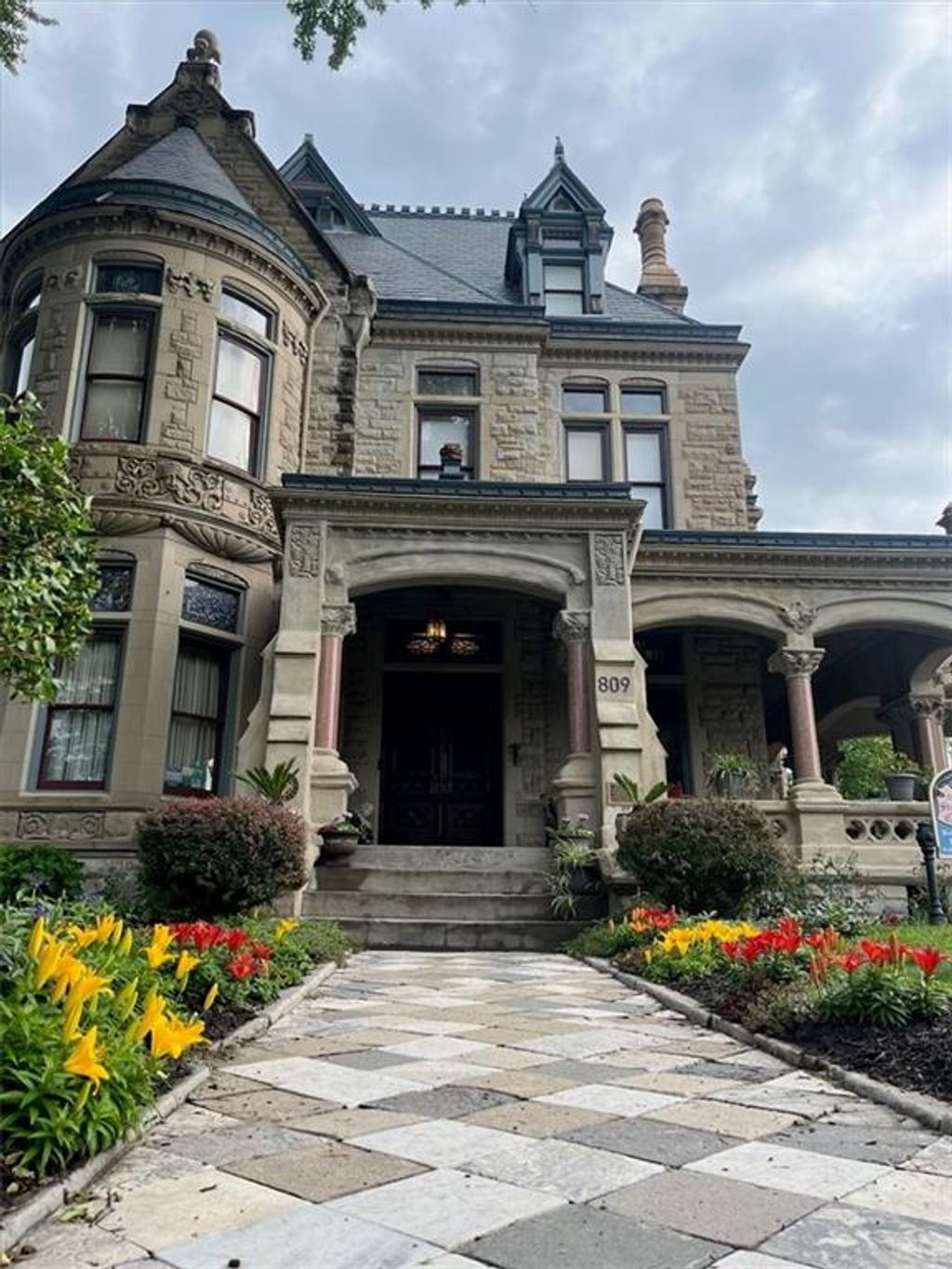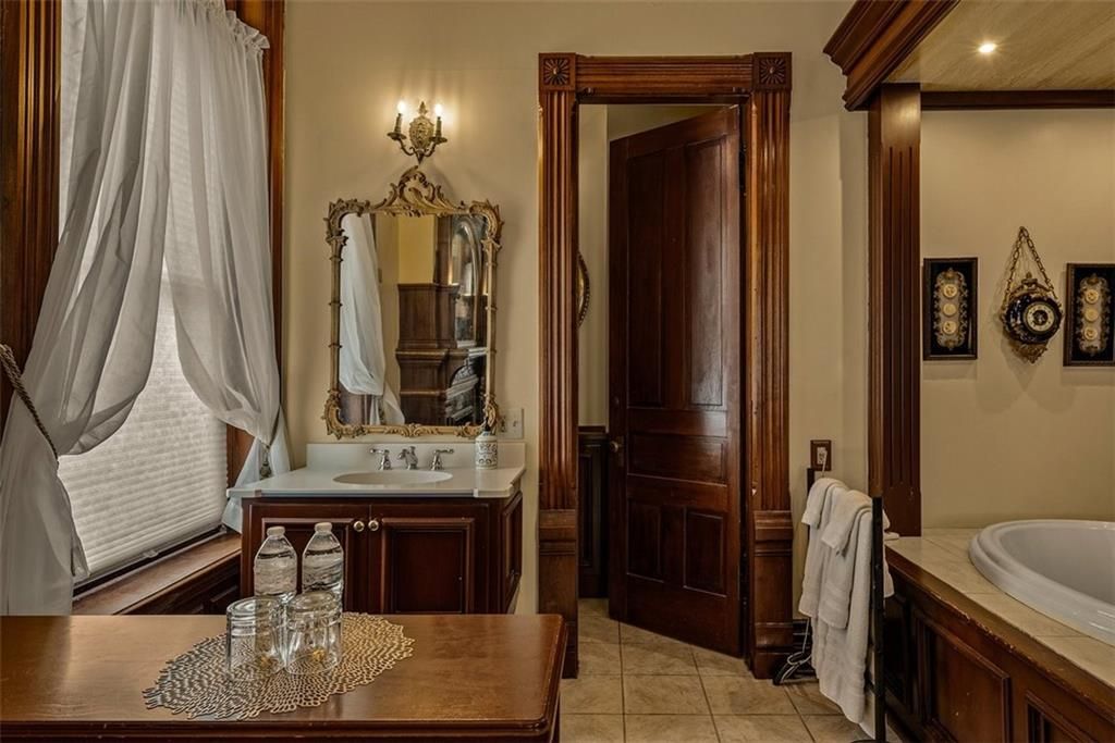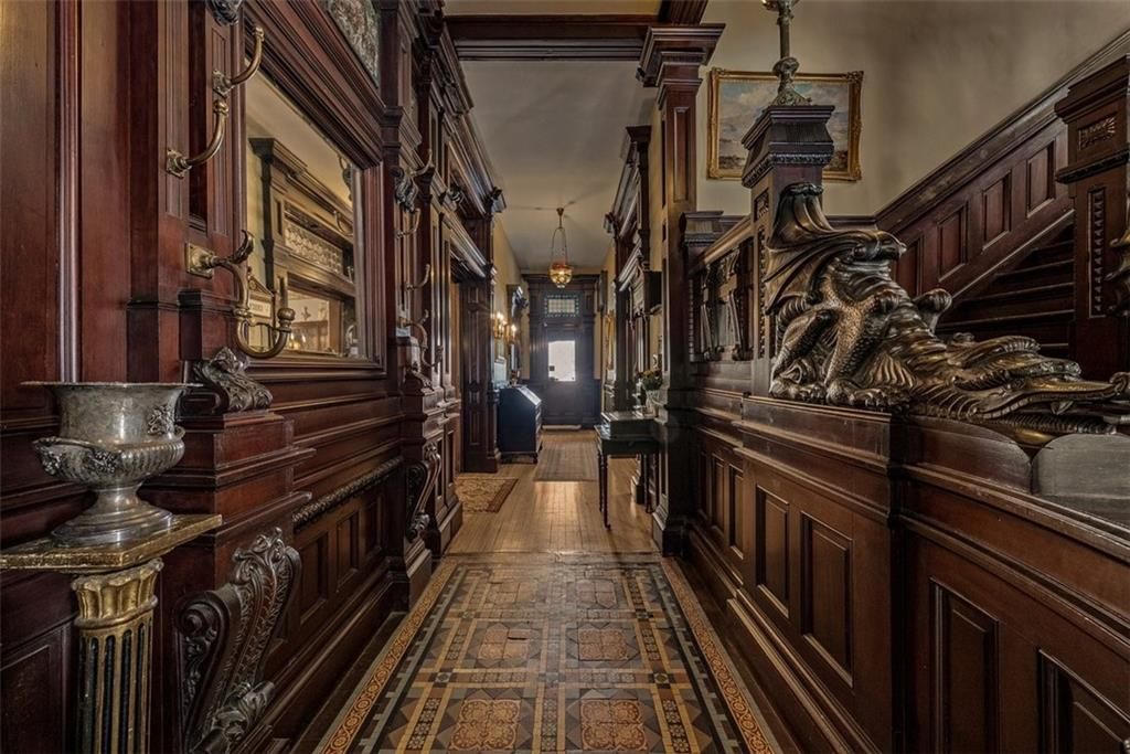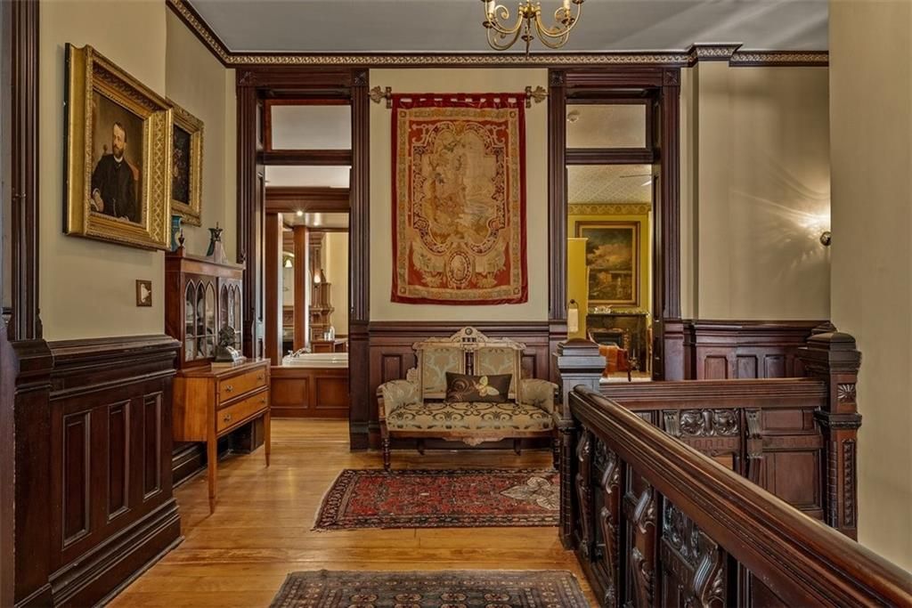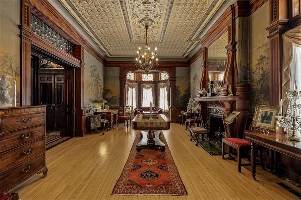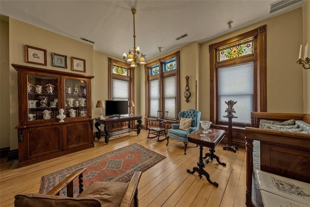 Shakespeare Chateau Inn and Gardens, located in the historic Hall Street District, is one of St. Joseph's premier homes. A SHORT DRIVE TO KANSAS CITY INTERNATIONAL AIRPORT! Built in 1885, this Chateauesque style home was built by Nathan P. Ogden. This high-Victorian mansion is an architectural gem, showcasing 47 original stained glass windows, exquisite hand-crafted woodwork, an expansive encaustic tile foyer, ornate plaster ceilings, and many original chandeliers - just to name a few. The main house is a fully furnished turn-key bed and breakfast with six elegant suites, a spacious commercial kitchen and wine cellar perfect for small gatherings. Four guest rooms on the second level are furnished with period art and antiques each named after works of Shakespeare. Two additional suites on the third level are ideal for long term guests. The carriage house provides three apartments, perfect for longer-term rentals, adding versatility to the property. 819 Hall Street is also included. This all brick house has been refurbished on the exterior and inside is a blank canvas, stripped to the studs and ready for a transformative rehab. Whether you envision a personal residence, a thriving B&B, or an event space, the possibilities here are endless. Live your dream and make Shakespeare Chateau your next great chapter. This is a RARE OPPORTUNITY to own a piece of history. This house has changed hands only five times in 140 years and remains as magnificent as the day it was built.