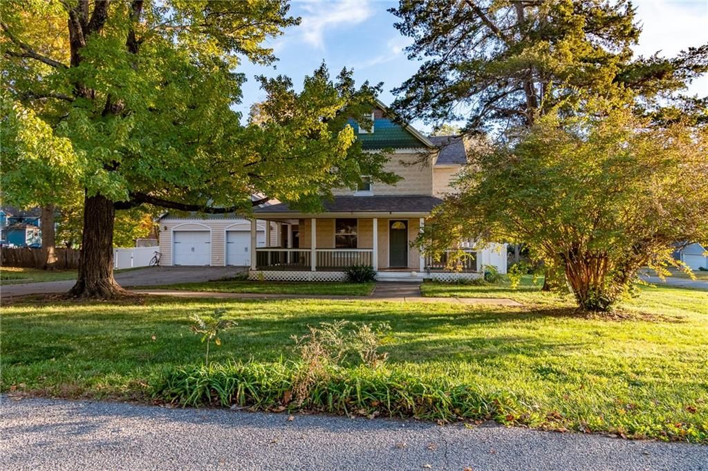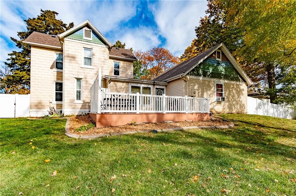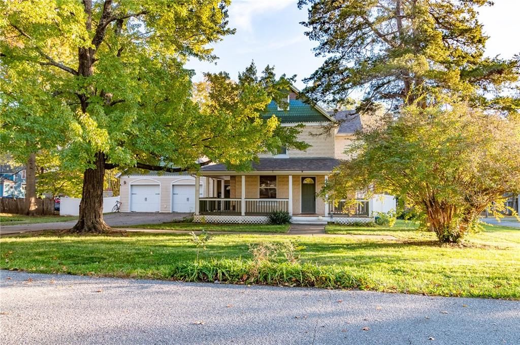 Step back in time with this exquisite 1910 two-story home, beautifully renovated top to bottom in 2004. The expansive wraparound porch on three sides invites you to relax and enjoy the charming surroundings. Inside you'll find three bedrooms and 1.5 baths, updated kitchen, extra large mudroom area and an unfinished basement for extra storage and safety. The two car attached garage still feels almost new and the backyard deck (2010) overlooks the fenced backyard - perfect for entertaining or simply unwinding. Utilize the storage shed in the backyard to keep garage space open. Nestled on a corner lot with a generous yard in both the front and back, this property combines historic charm with modern conveniences. Plus, the roof was newly replaced 10/25 with upgraded class 4 impact resistance shingle, ensuring peace of mind for years to come and potential insurance savings. Don't miss the chance to own this timeless treasure!