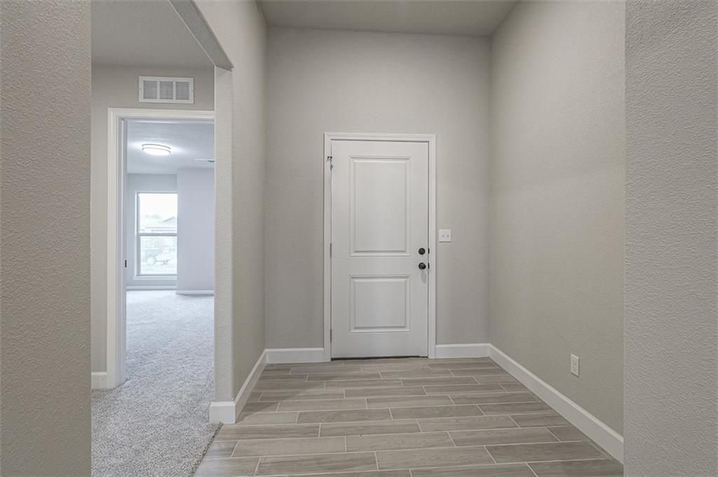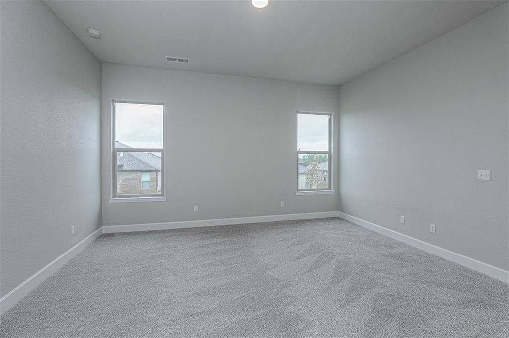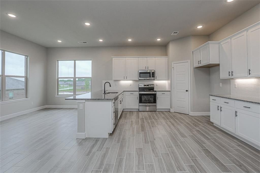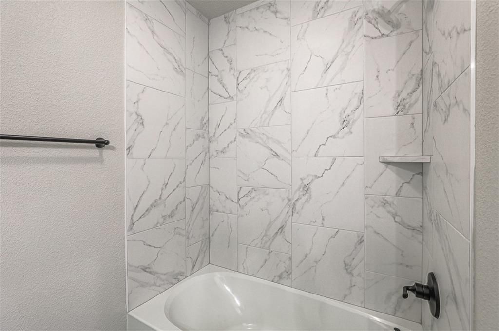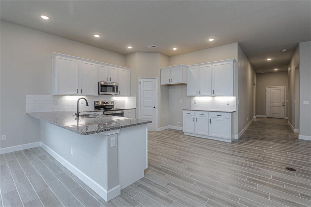 This floor plan features an all-brick exterior and a covered porch accented by two elegant arches for a welcoming entrance. The open-concept layout includes 10-foot ceilings in the entry, main living area, and primary suite. The kitchen offers a peninsula for meal preparation and entertaining. Additional highlights include a fully sodded yard with a landscape package, a covered back patio, a master suite with a soaker tub, separate shower, and dual vanities. Photos are a representation of the Angie floor plan. Selections may vary from this home, and plans are subject to minor changes.