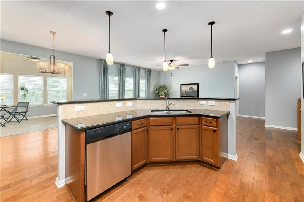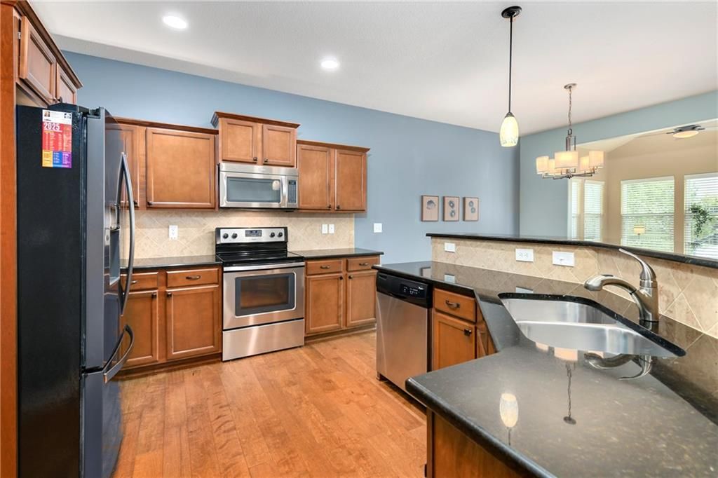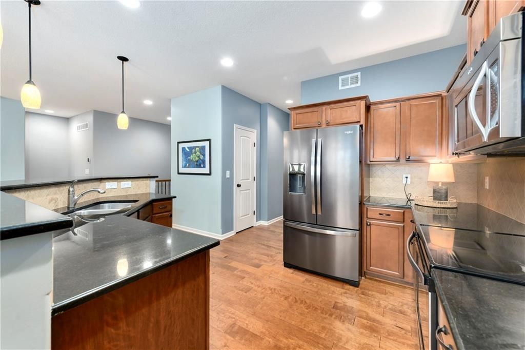 True ranch (36" doors for accessibility) in a great location! This home has an open flr plan and backs to the walking trails and is a short walk to the community pool, club house, pickle bar courts and playground area. The back yard is fenced, has an oversized patio and nice shed. There is a wonderful sunroom off the kitchen...great for entertaining or relaxing with loads of natural light. All appl remain w/ the home including the s/s refrigerator. A nice walk-in pantry off the garage is perfect for ease of grocery put away. The finished lower level has a family room, 4th bedroom and full bath. The unfinished area is huge (60X23) for storage or future additional finished area. The home is equipped with a charging station for your electric vehicle. Plus, an in-ground sprinkler system. Come check it out.