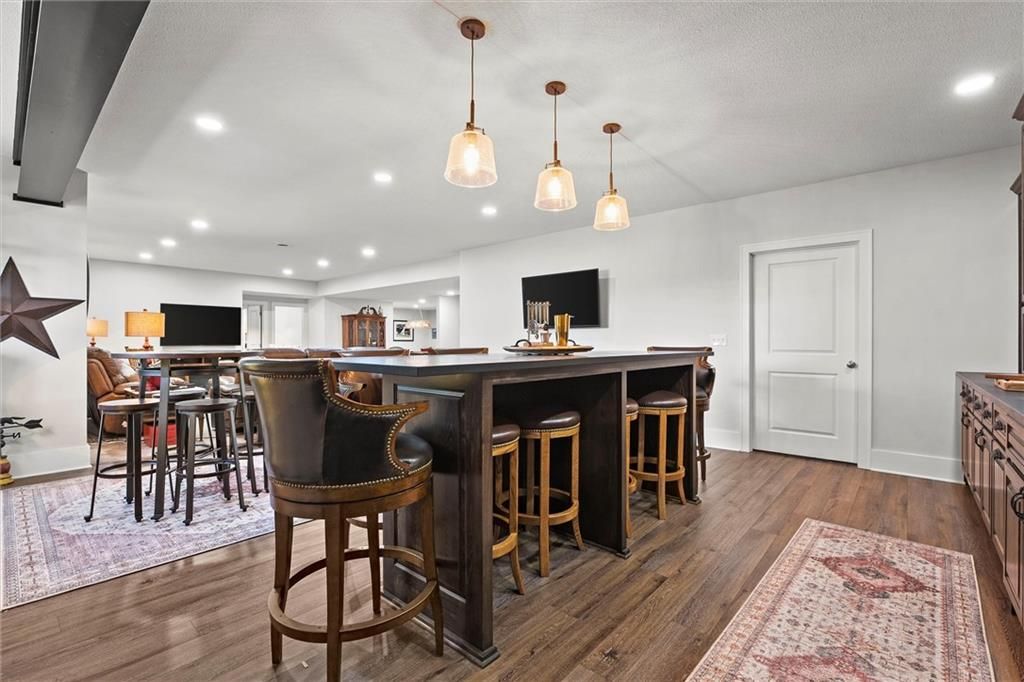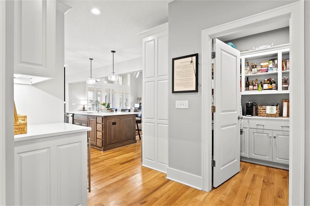 Situated on a picturesque, quarter-acre lot in the coveted Timber Rock subdivision, this pristine New Haven plan by Rodrock Homes - built in 2021 - offers sophisticated elegance and modern comfort in every detail. Soaring ceilings welcome you as you enter along with beautiful natural lighting! Great room with fireplace! Gourmet kitchen has been upgraded with a 5-burner gas cooktop, stainless steel appliances, quartz countertops, large island, dedicated wine frig, and gigantic pantry with built ins! A cozy hearth room off the kitchen with a second fireplace adds warmth and charm + breakfast room which is the perfect spot for dining! Elegant hardwood floors run throughout the main level including master suite and home office! Master bedroom is oversized with private spa like bathroom and HUGE California walk in closet! Second level has 3 spacious bedrooms, and a lovely loft! Beautifully finished basement with sixth bedroom, full bathroom, and amazing wet bar that is a must see! Covered deck overlooks treed and fenced yard! The great amenities are the Clubhouse, Pickleball Court, Play Area, Swimming Pool, and Trails! Also, conveniently located close to excellent schools, major roads, restaurants, and shopping!