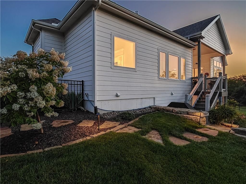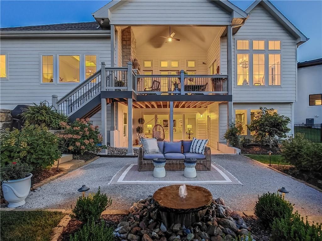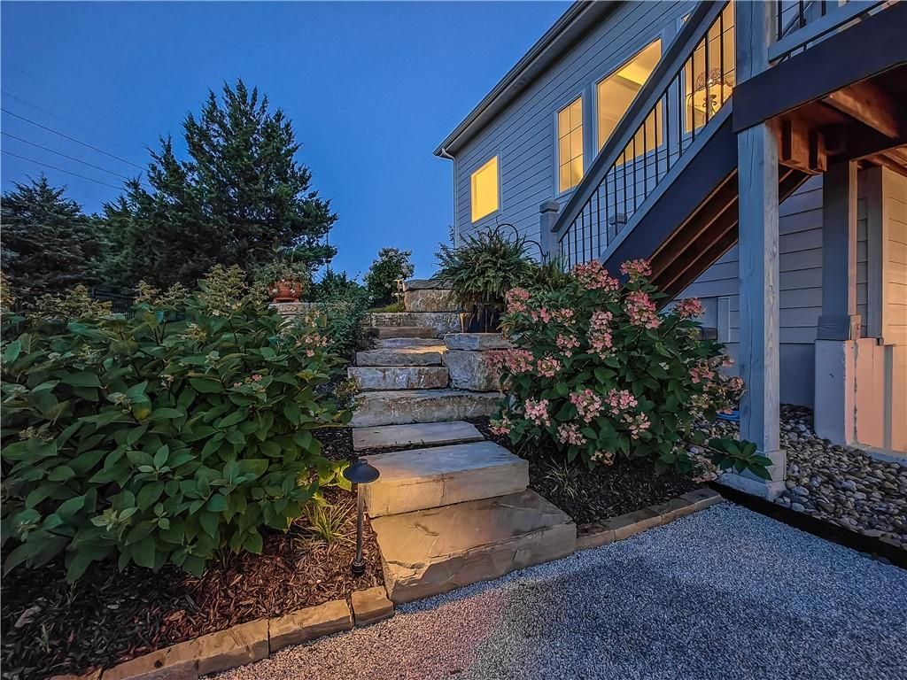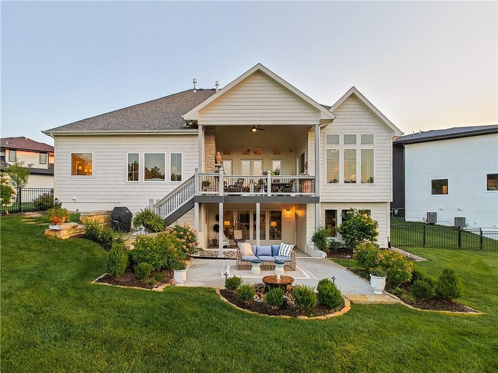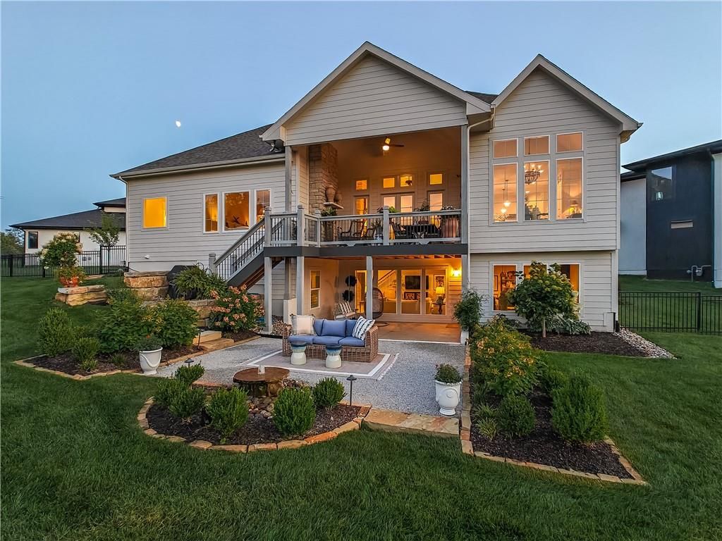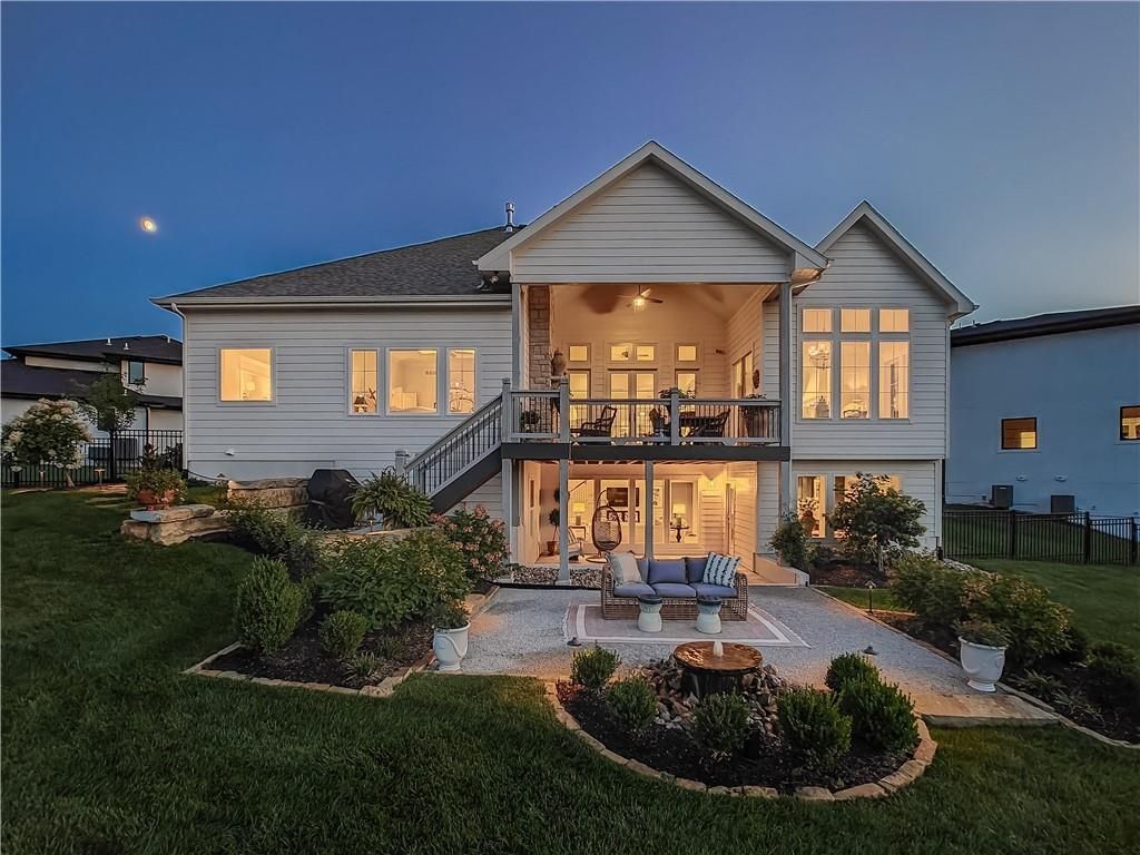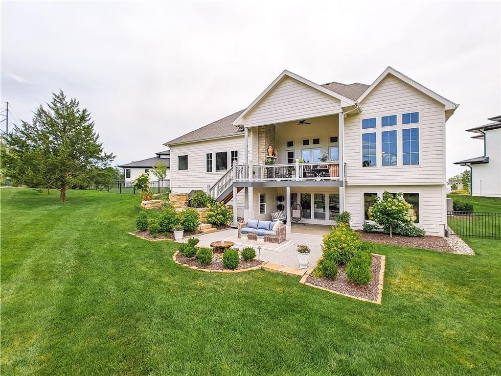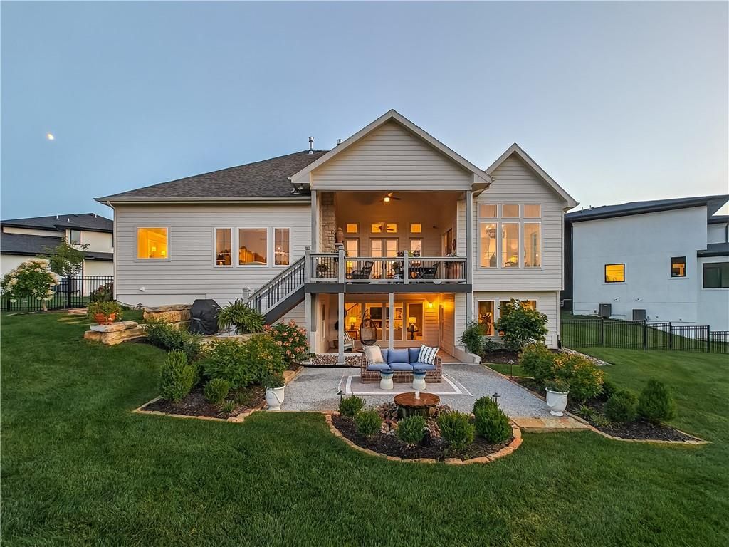 Avoid the uncertainty of new construction with its unforeseen delays and expenses. This nearly new, 2-year-old beauty is better than new construction with established landscaping, fenced back yard and premium upgrades throughout. This 4-bedroom James Engle Stoneybrook Expanded Reverse 1.5-story home delivers all the features you want, without the wait. Nestled on what many call the most coveted lot in Wilshire Hills, this home backs to lush, wooded green space with no neighbors in sight, offering unmatched privacy and tranquility. Expansive windows create a seamless transition from indoors to outdoors. French doors take you to a covered deck and fireplace. From there, stairs lead to the lower level patio with fountain, extending your living space and entertainment options. The kitchen, with custom inset cabinetry, is extra special with a large breakfast area, a prep kitchen, and large pantry. Every appliance is top-of-the line, including the Subzero fridge. The marble island contains a large farm sink. A formal dining room is conveniently located directly off of the prep kitchen. The open-concept main level features a great room with stone fireplace, a powder room with wall mount faucets above the sink and two bedrooms, each with ensuite. The large primary bathroom has custom inset cabinets, custom makeup area, heated marble floors, shower and spa tub. The bright, lower level living area has a fireplace for cozy evenings in front of the TV, or entertain in the bar area with its abundant cabinets, sink, microwave, beverage fridge and large island. There are two bedrooms with Jack and Jill bathroom as well as a half bath that complete the walk-out lower level. Enjoy the perfect blend of thoughtful design, luxury finishes, and a move-in ready experience - all in one remarkable home. Wilshire Hills is conveniently close to 69 HWY, and the Bluhawk shopping center with grocery, retail, dining and soon a theater.