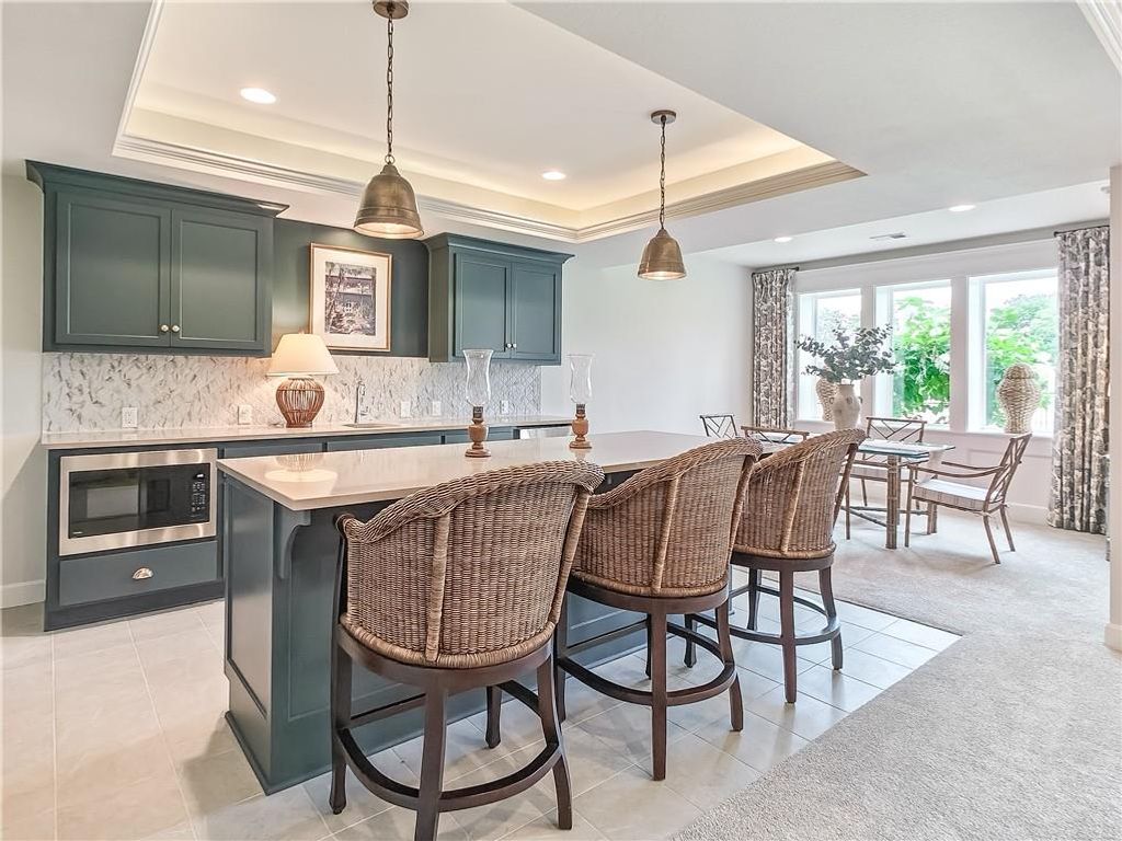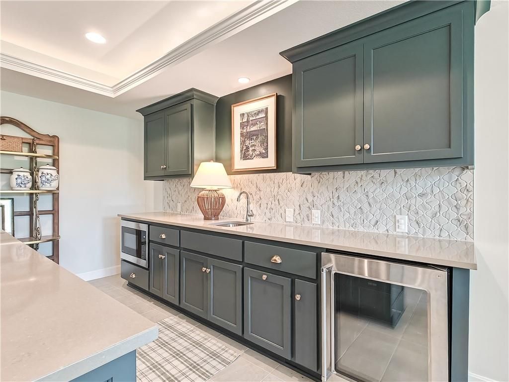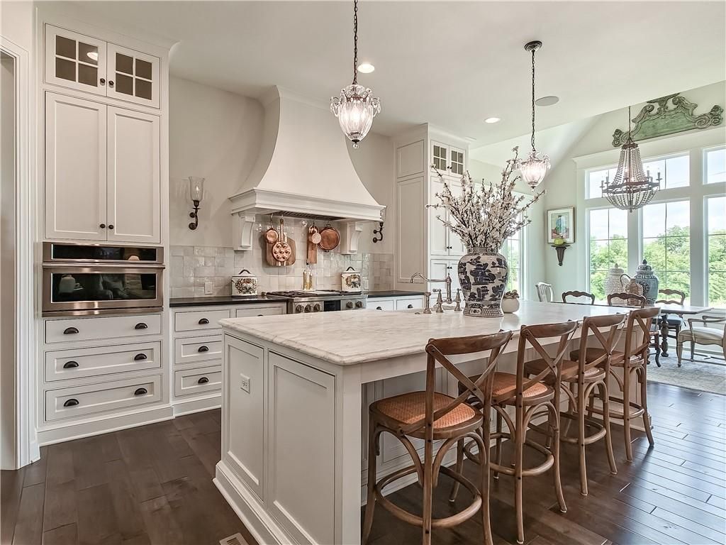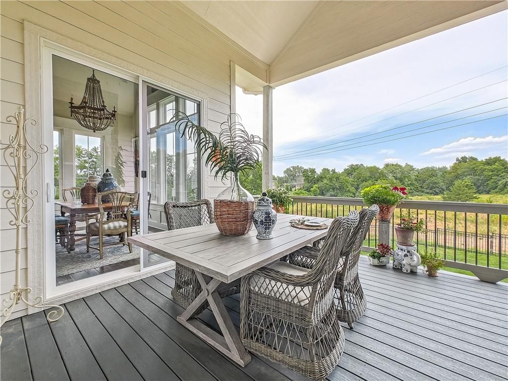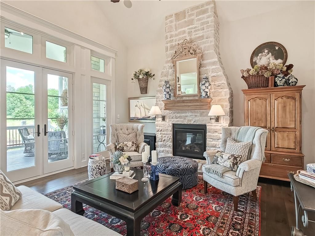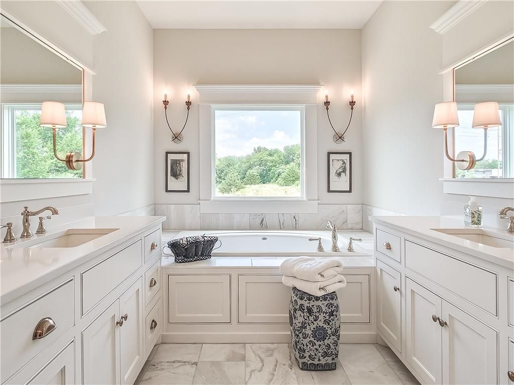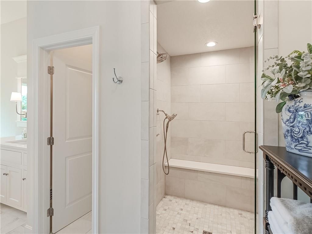 Avoid the uncertainty of new construction with its unforeseen delays and expenses. This nearly new, 2-year-old beauty is better than new construction with established landscaping, fenced back yard and premium upgrades throughout. This 4-bedroom James Engle Stoneybrook Expanded Reverse 1.5-story home delivers all the features you want, without the wait. Nestled on what many call the most coveted lot in Wilshire Hills, this home backs to lush, wooded green space with no neighbors in sight, offering unmatched privacy and tranquility. Expansive windows create a seamless transition from indoors to outdoors. French doors take you to a covered deck and fireplace. From there, stairs lead to the lower level patio with fountain, extending your living space and entertainment options. The kitchen, with custom inset cabinetry, is extra special with a large breakfast area, a prep kitchen, and large pantry. Every appliance is top-of-the line, including the Subzero fridge. The marble island contains a large farm sink. A formal dining room is conveniently located directly off of the prep kitchen. The open-concept main level features a great room with stone fireplace, a powder room with wall mount faucets above the sink and two bedrooms, each with ensuite. The large primary bathroom has custom inset cabinets, custom makeup area, heated marble floors, shower and spa tub. The bright, lower level living area has a fireplace for cozy evenings in front of the TV, or entertain in the bar area with its abundant cabinets, sink, microwave, beverage fridge and large island. There are two bedrooms with Jack and Jill bathroom as well as a half bath that complete the walk-out lower level. Enjoy the perfect blend of thoughtful design, luxury finishes, and a move-in ready experience - all in one remarkable home. Wilshire Hills is conveniently close to 69 HWY, and the Bluhawk shopping center with grocery, retail, dining and soon a theater.