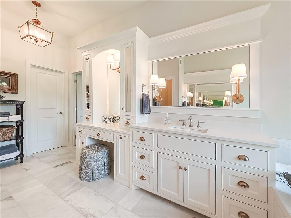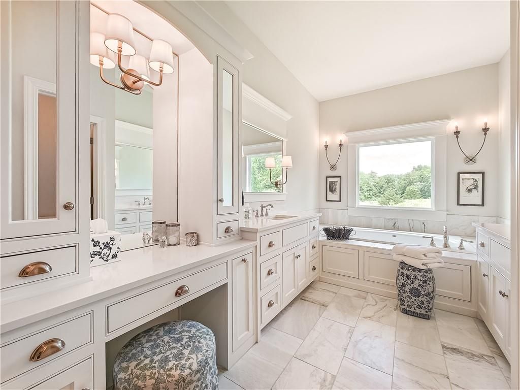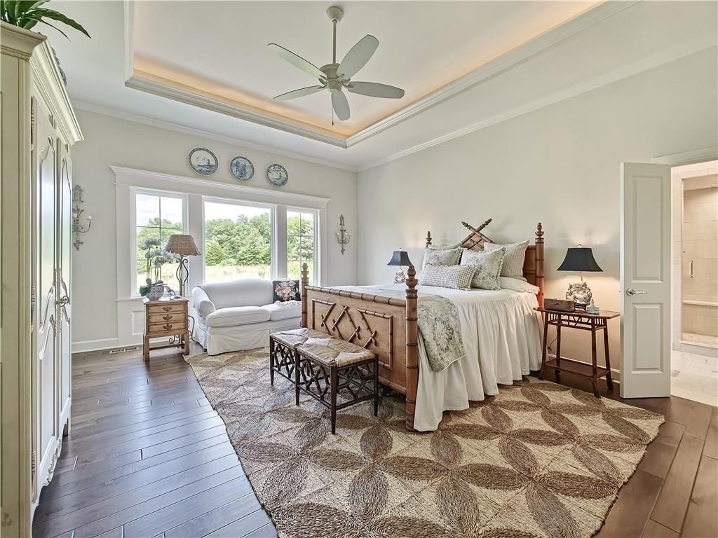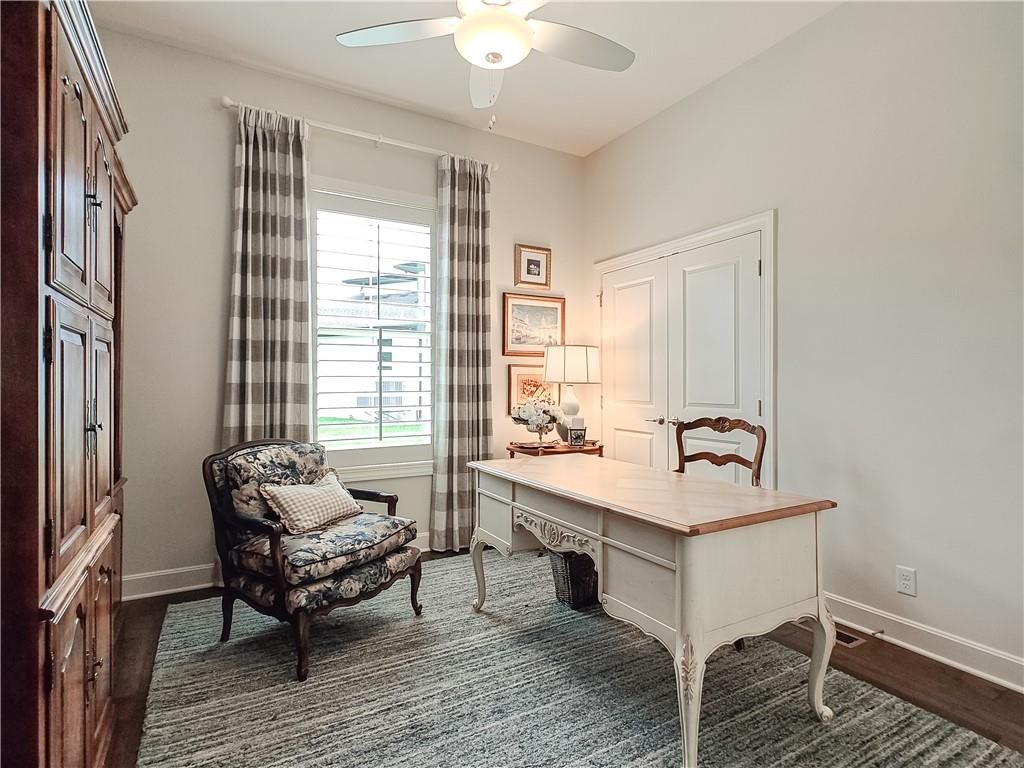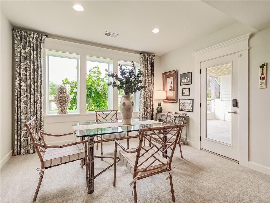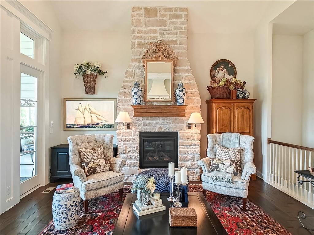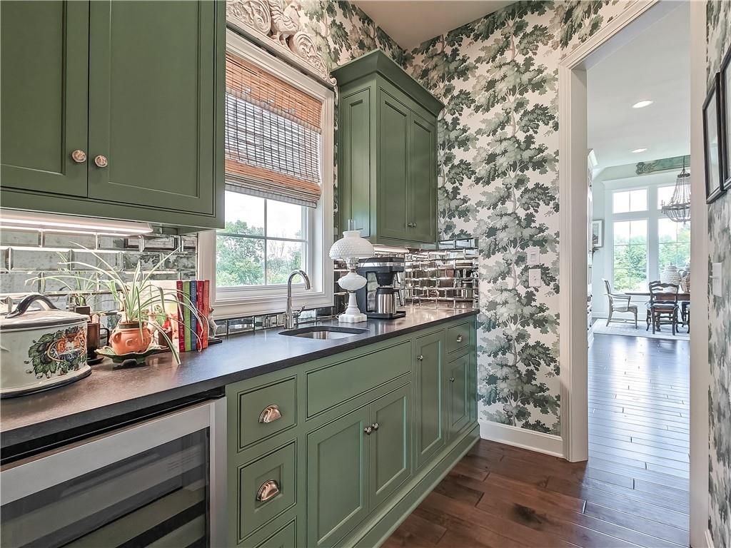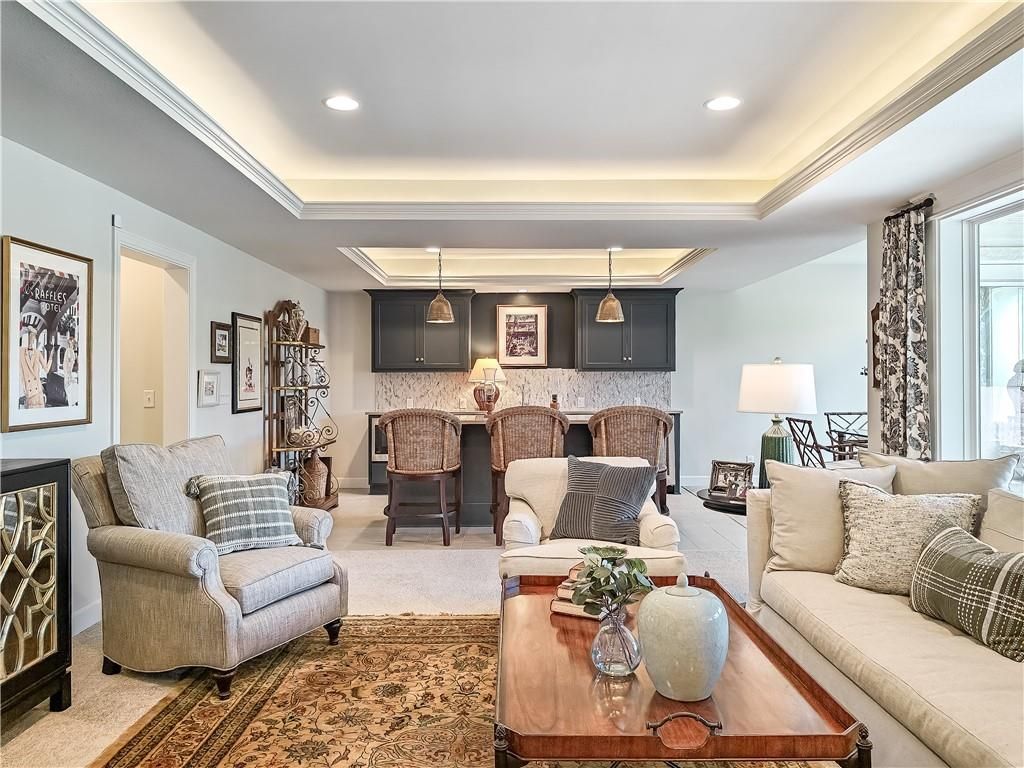 Avoid the uncertainty of new construction with its unforeseen delays and expenses. This nearly new, 2-year-old beauty is better than new construction with established landscaping, fenced back yard and premium upgrades throughout. This 4-bedroom James Engle Stoneybrook Expanded Reverse 1.5-story home delivers all the features you want, without the wait. Nestled on what many call the most coveted lot in Wilshire Hills, this home backs to lush, wooded green space with no neighbors in sight, offering unmatched privacy and tranquility. Expansive windows create a seamless transition from indoors to outdoors. French doors take you to a covered deck and fireplace. From there, stairs lead to the lower level patio with fountain, extending your living space and entertainment options. The kitchen, with custom inset cabinetry, is extra special with a large breakfast area, a prep kitchen, and large pantry. Every appliance is top-of-the line, including the Subzero fridge. The marble island contains a large farm sink. A formal dining room is conveniently located directly off of the prep kitchen. The open-concept main level features a great room with stone fireplace, a powder room with wall mount faucets above the sink and two bedrooms, each with ensuite. The large primary bathroom has custom inset cabinets, custom makeup area, heated marble floors, shower and spa tub. The bright, lower level living area has a fireplace for cozy evenings in front of the TV, or entertain in the bar area with its abundant cabinets, sink, microwave, beverage fridge and large island. There are two bedrooms with Jack and Jill bathroom as well as a half bath that complete the walk-out lower level. Enjoy the perfect blend of thoughtful design, luxury finishes, and a move-in ready experience - all in one remarkable home. Wilshire Hills is conveniently close to 69 HWY, and the Bluhawk shopping center with grocery, retail, dining and soon a theater.