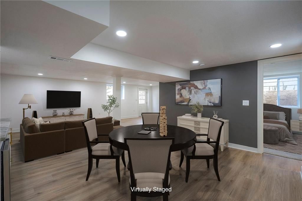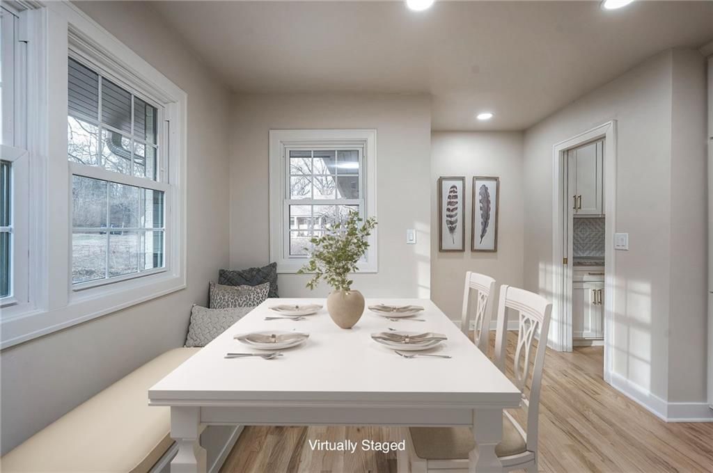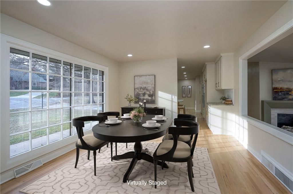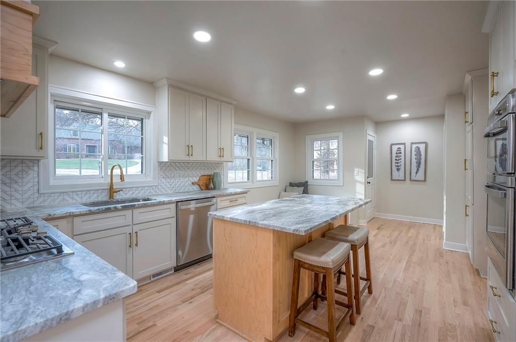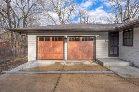 Experience the ultimate in value and quality with this reimagined true ranch home on a half acre lot, ideally located on a private street with serene creek views. This meticulously remodeled residence, seamlessly combines the feel of new construction with the charm and character of Old Leawood - perfect for those seeking main-level living without sacrificing quality. Upon entering, you'll find an inviting layout that balances open space with warmth. The expansive living room is designed for relaxation and entertainment, featuring a cozy fireplace and 12-foot sliding doors that create a seamless transition between indoor and outdoor spaces. The family room at the rear of the home is filled with natural light. Both rooms provide stunning views of the new stamped concrete patio, complete with a seating wall and integrated LED lighting, as well as the expansive yard and creek beyond. At the heart of the home lies the chef's kitchen, showcasing custom cabinetry with a natural maple island and a charming banquette seating area, all complemented by high-end GE Profile appliances that blend functionality with elegance. A private butler pantry adds convenience for storing kitchen appliances and keeping the space organized. The primary bedroom serves as a true retreat, featuring a custom walk-in closet and a spa-like bath that invites relaxation. The main level is thoughtfully completed with 2 additional bedrooms, a full bath, a mudroom, a laundry room and a convenient half bath. The beautifully finished walkout lower level enhances the home's appeal, offering a fourth bedroom, a third full bath, and a spacious rec room complete with a bar and daylight window - perfect for family gatherings or quiet evenings at home. This home perfectly blends luxury, comfort, and functionality, catering to an easy lifestyle while retaining the timeless charm of its Leawood heritage. More than just a house, this is a welcoming retreat for those who value quality living.